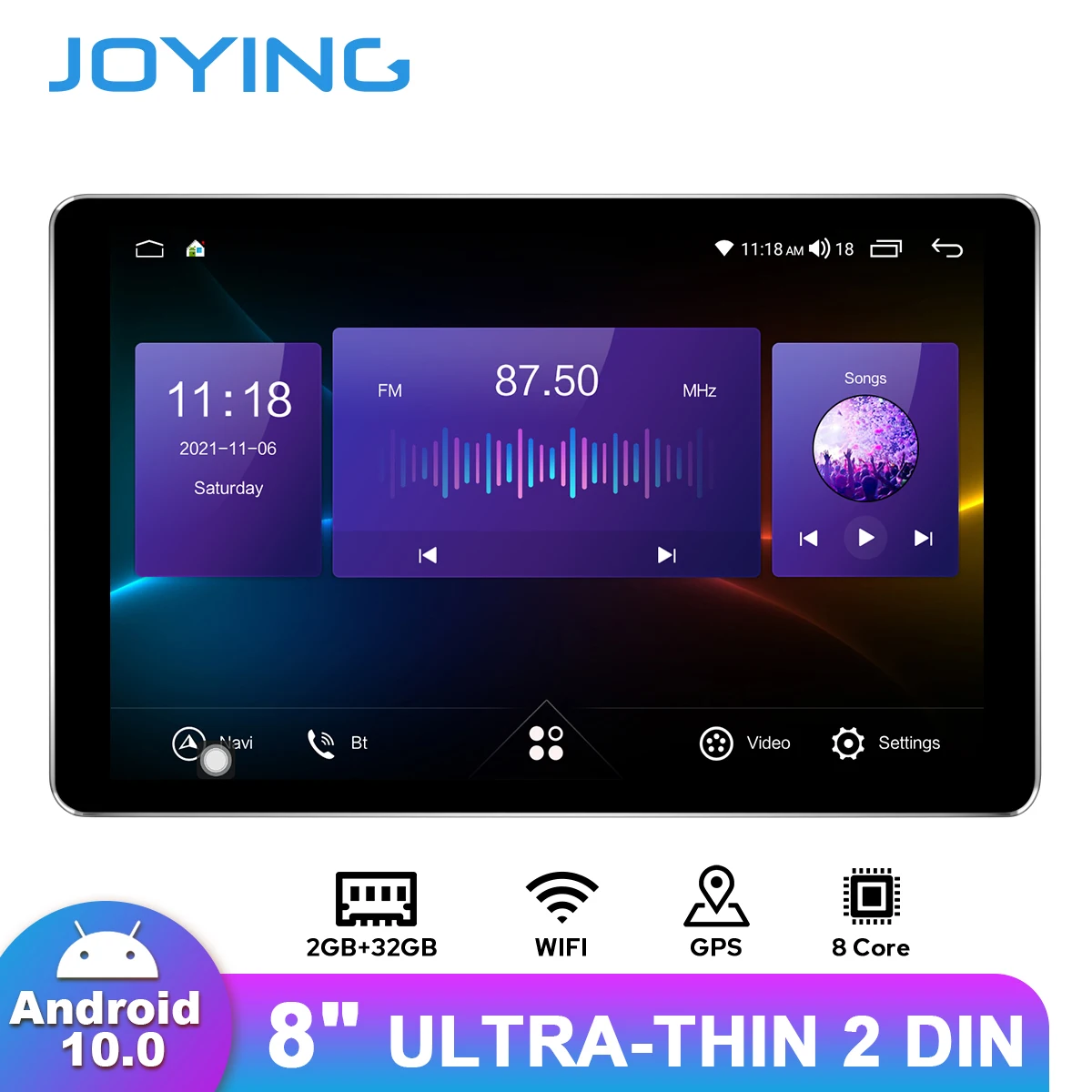Ультратонкая Универсальная Автомобильная навигационная система JOYING, 8 дюймов, 2 Din, Android 10,0, 1280*800 IPS, 2 Гб ОЗУ, 32 Гб ПЗУ, рулевое колесо