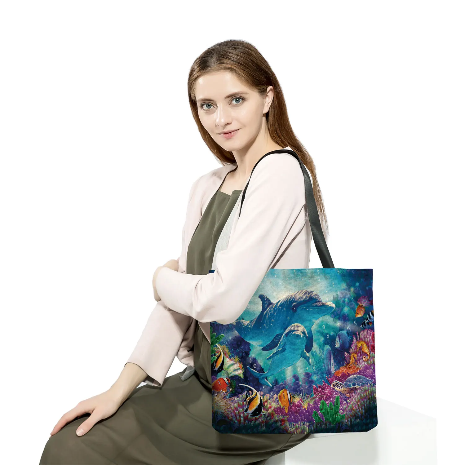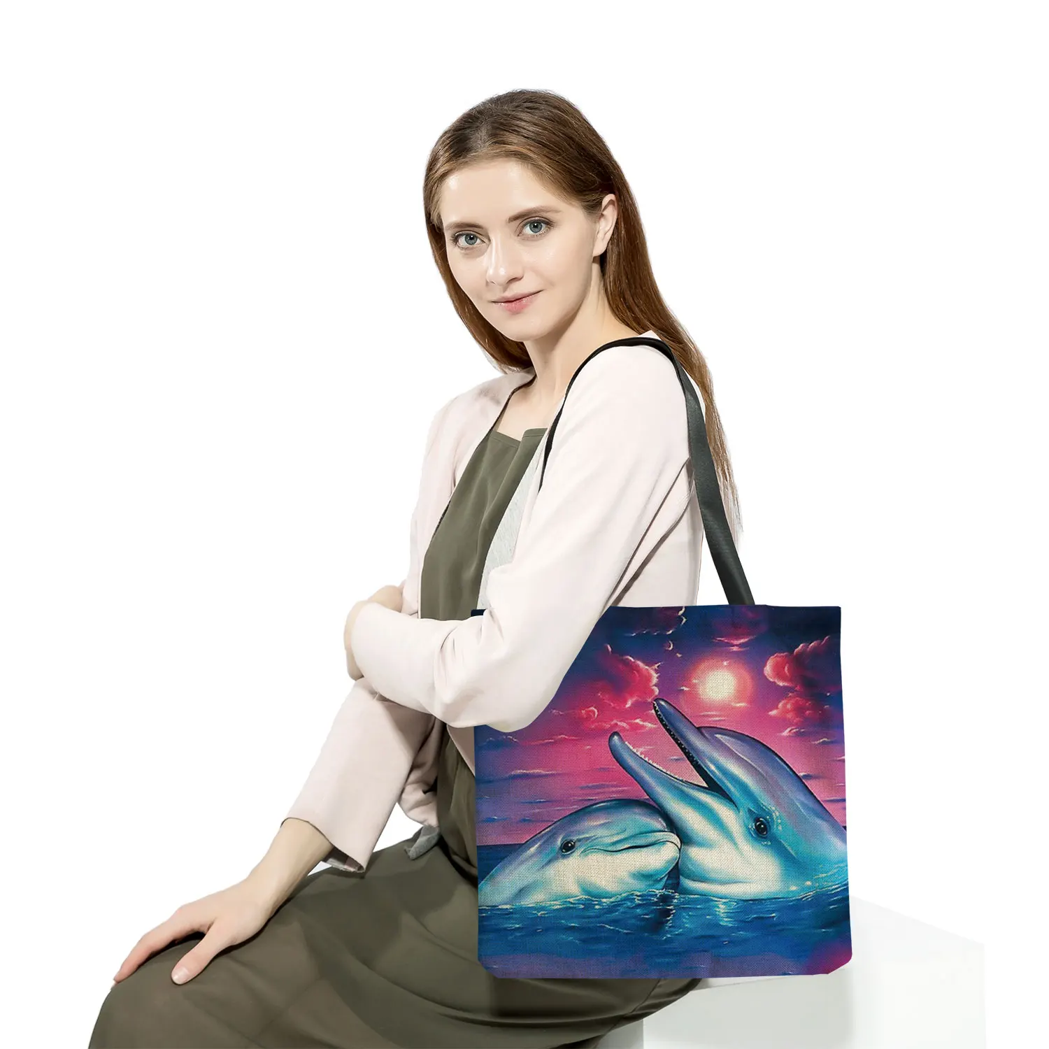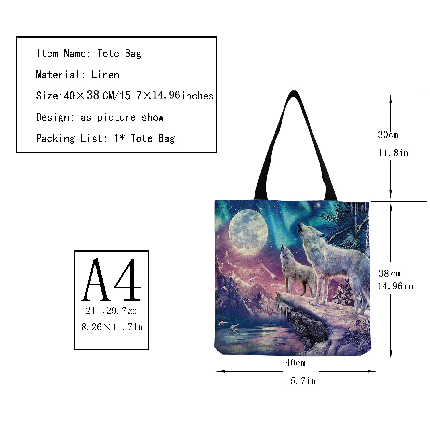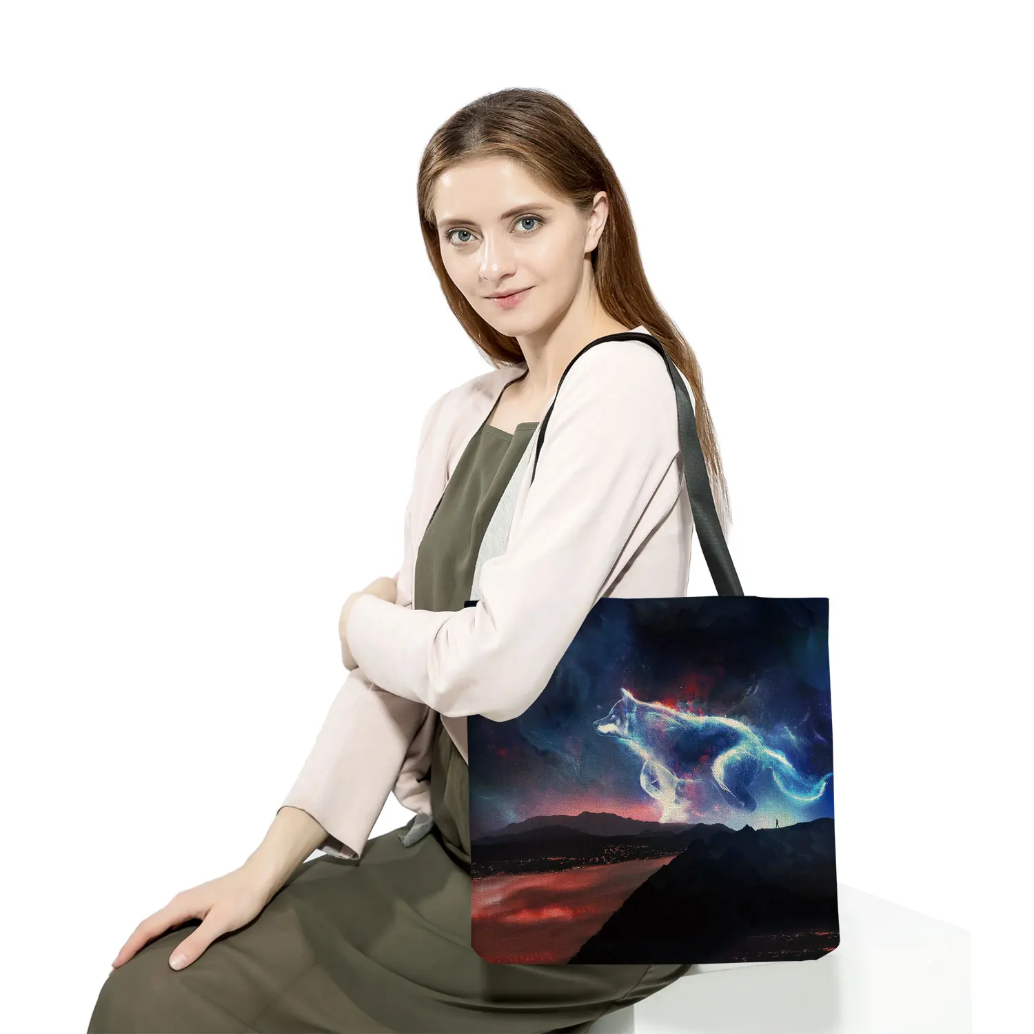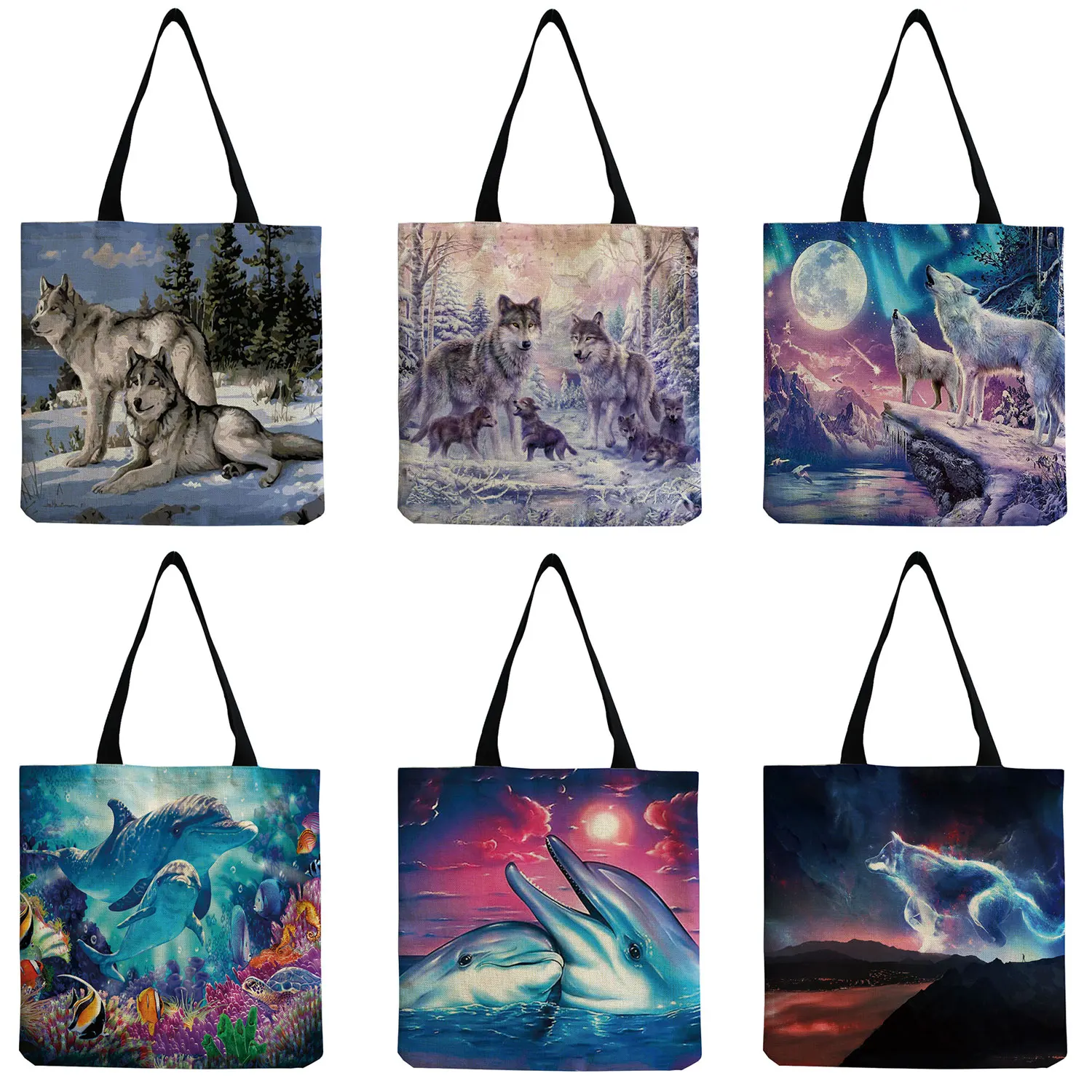 Сумка-тоут с принтом дикого волка, забавные женские сумки, портативная дорожная сумка, многоразовая сумка для покупок для продуктов, сумки на плечо для женщин