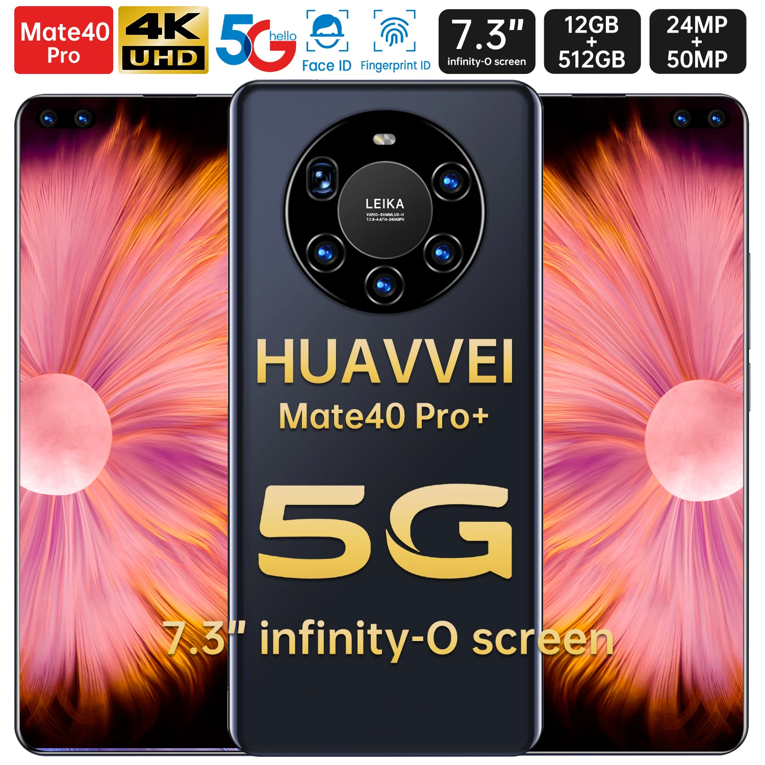 Смартфон 7,3 дюйма, Android 10,0, сканер отпечатка пальца, разблокировка распознаванием лица, двойная камера, 4G, смартфон, мобильный телефон 512 ГБ, телефон