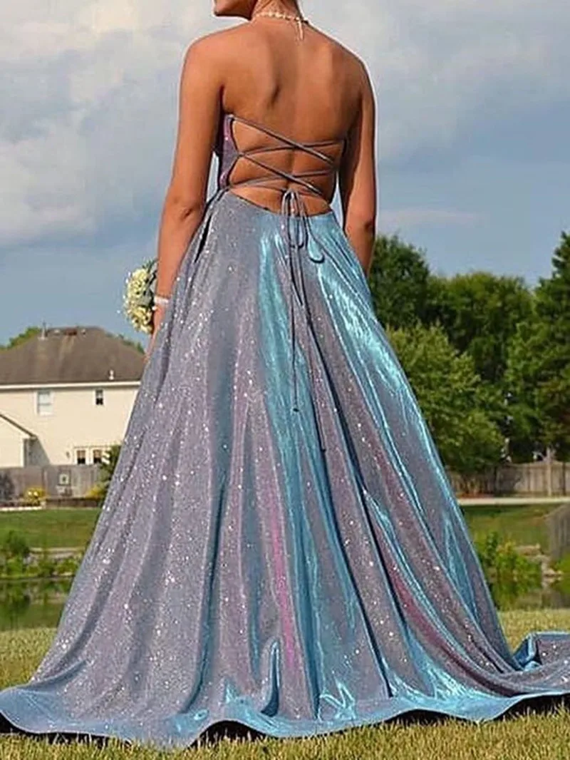 Блестящие темно-зеленые вечерние платья со шнуровкой, бальное плать...