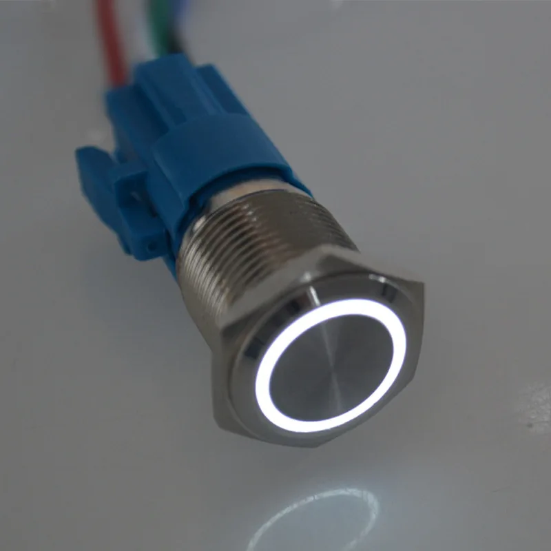 Водонепроницаемый металлический кнопочный переключатель, 16 мм, 10 А, цветной светодиодный мгновенный высветильник ель питания двигателя автомобиля, 5 В, 12 В, 24 В, 220 В