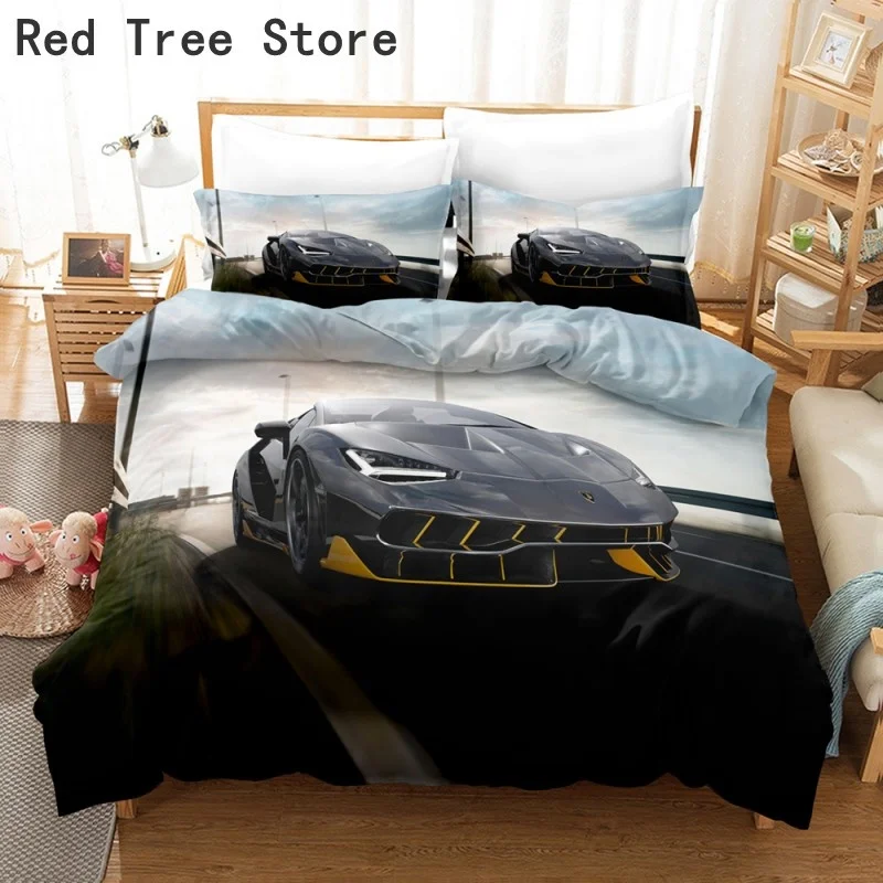 Пододеяльник с наволочкой и принтом гоночного автомобиля, Комплект постельного белья черного цвета, для двуспальной и двуспальной кровати, декор для спальни