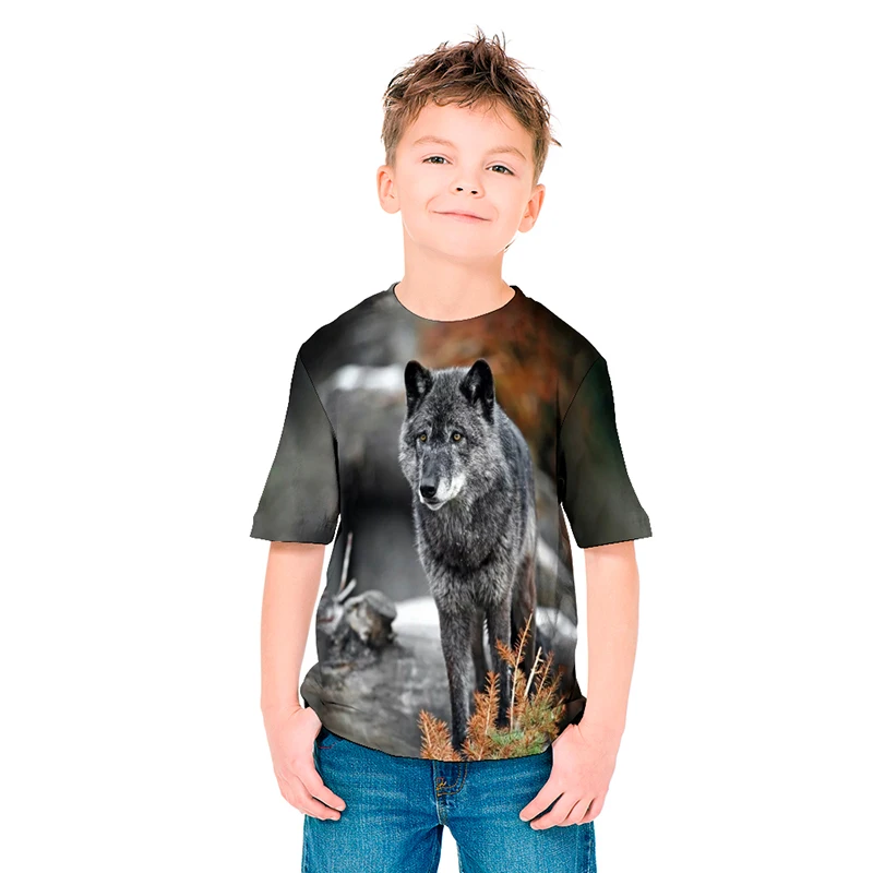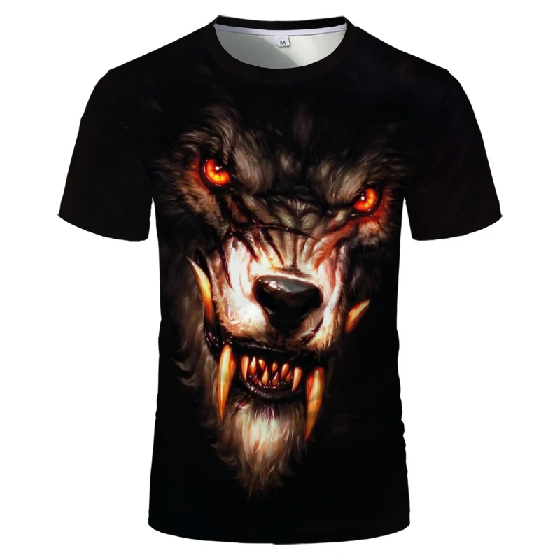 Мужская футболка с коротким рукавом и круглым вырезом, с 3D-принтом волка