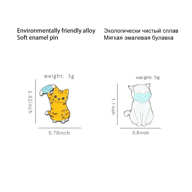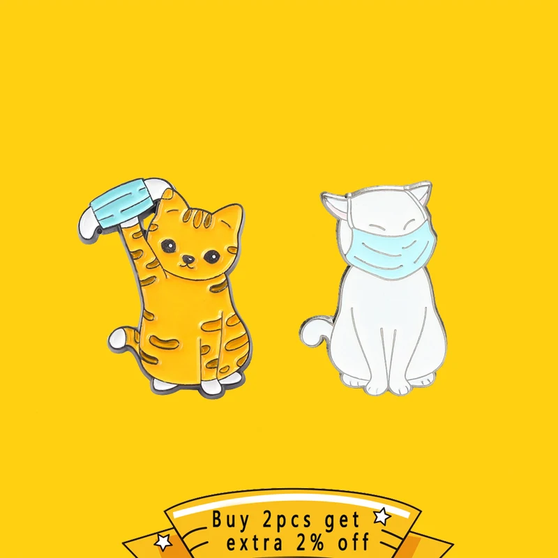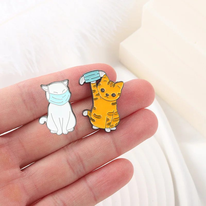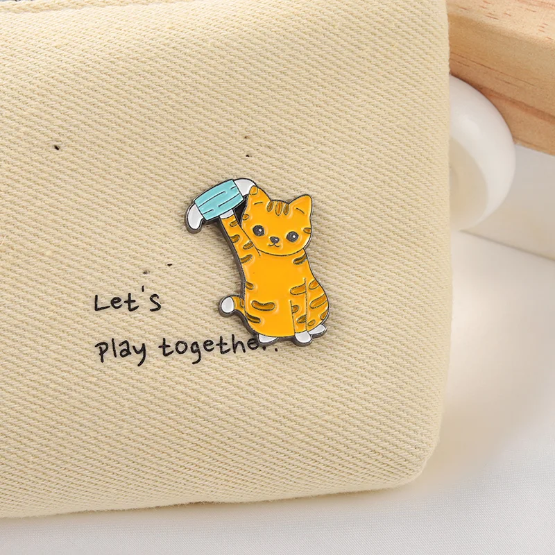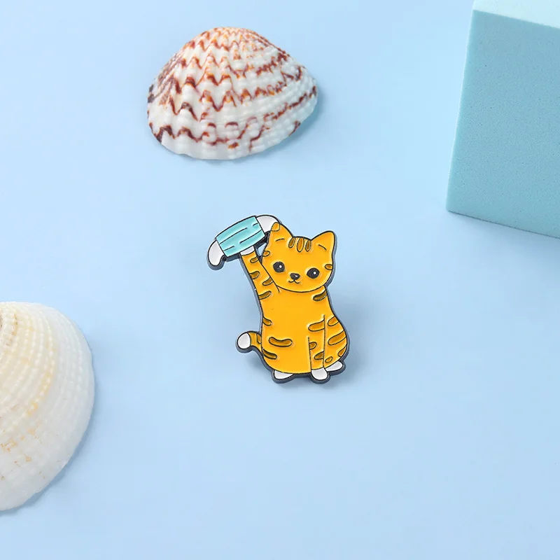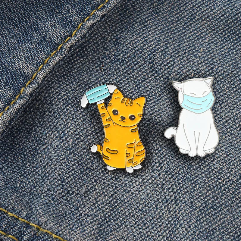Эмалированные заколки с милым котом, нашивки с рисунком маски на рю...