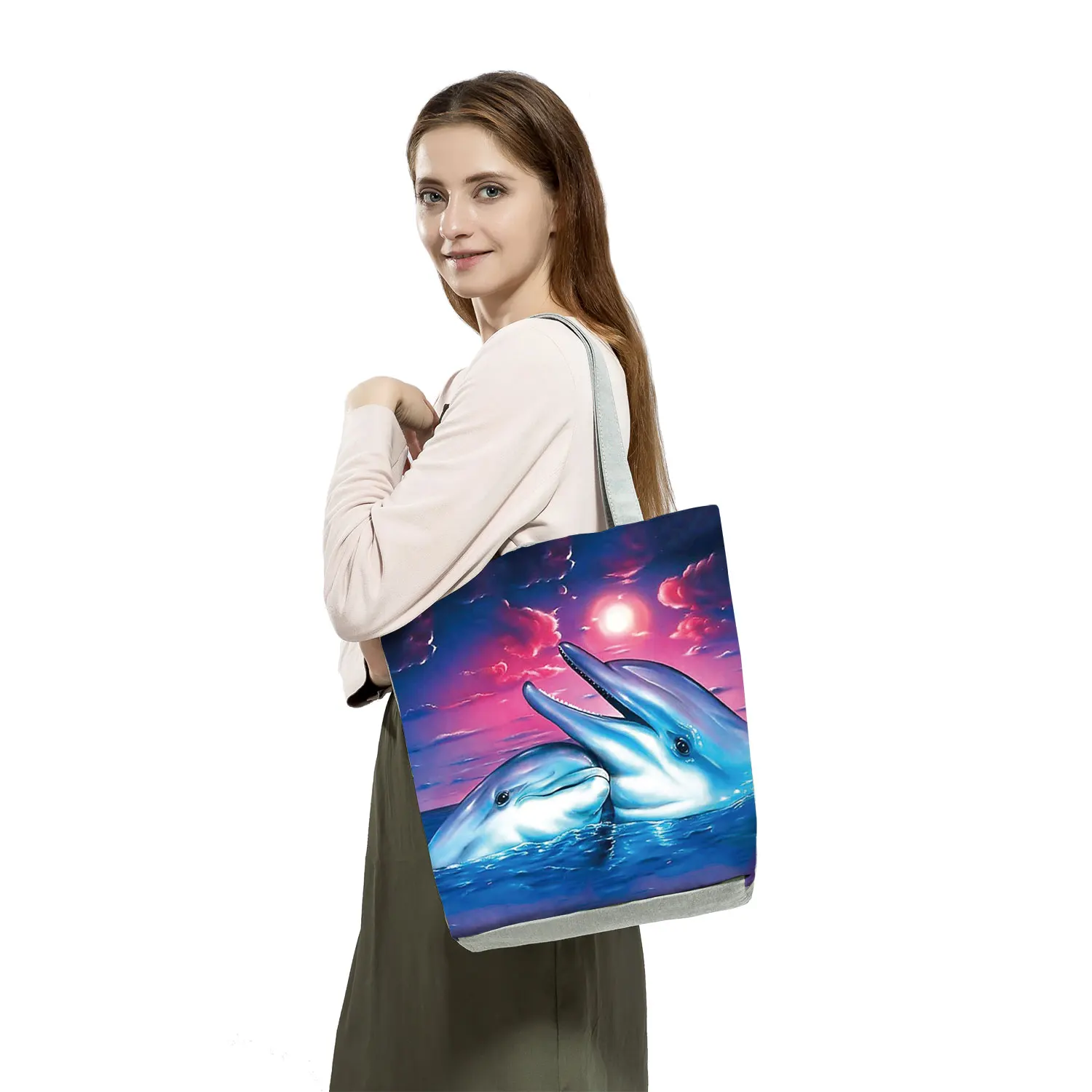 Сумка для покупок с принтом волка, Повседневная вместительная сумка для хранения, женская сумка, Портативная сумка в Крутом стиле, многоразовая сумка Ecobag с индивидуальным узором