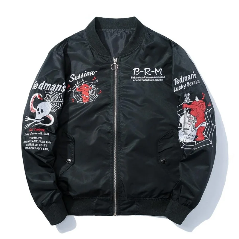 Осенняя куртка-бомбер с вышивкой маленького дьявола, мужская куртка-пилот, японская бейсбольная куртка Sukajan, сувенирная уличная одежда Yokosuka