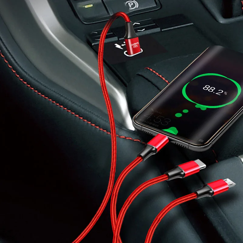 Автомобильный Стайлинг 3 в 1 Type-C Lightning Micro USB кабель для ...