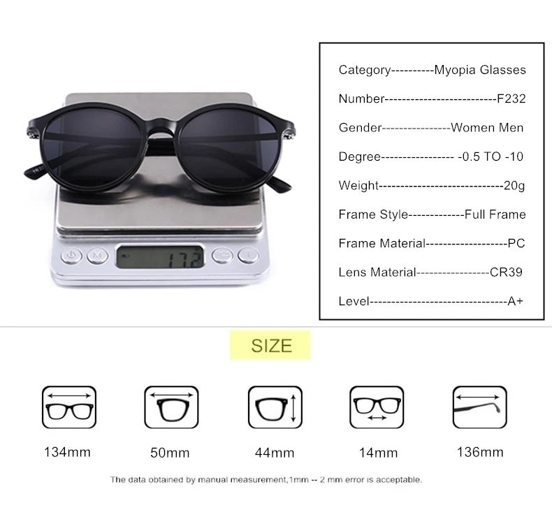 Набор Магнитных солнцезащитных очков и очков по рецепту для мужчин и женщин, близорукость от-0,5 до-10, модная круглая оправа Очки для близоруких F232