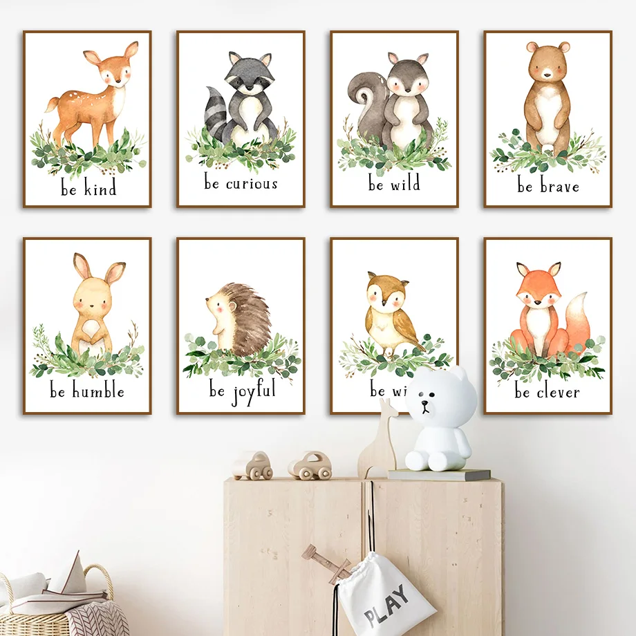 Жираф, медведь, олень, коала, кролик, птица, цветок, настенная живо...