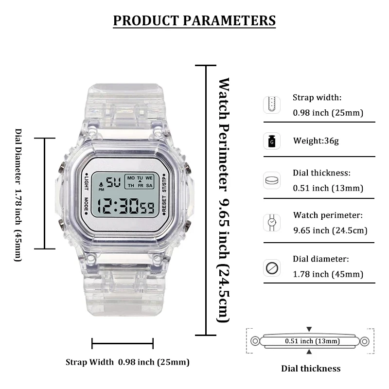 Часы женские электронные, Прозрачные Цифровые с квадратным цифербла...