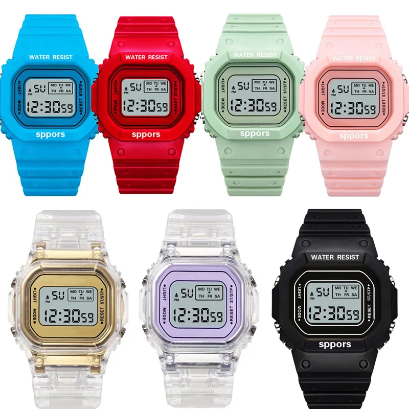 Новинка, прозрачные яркие цветные цифровые квадратные часы, женские часы, спортивные детские электронные часы, унисекс, часы для пар, женские часы