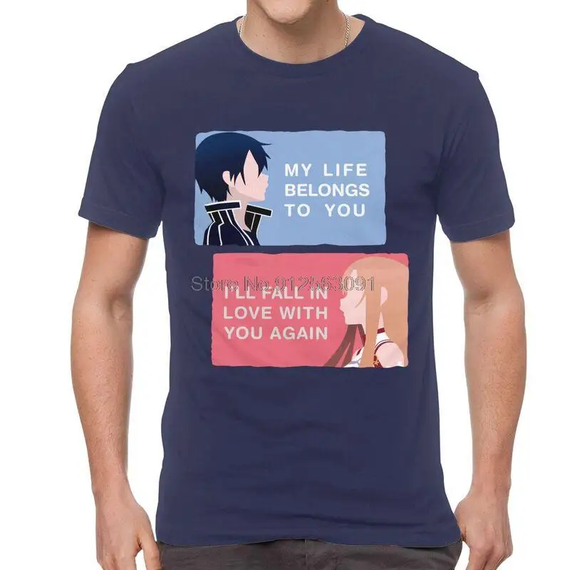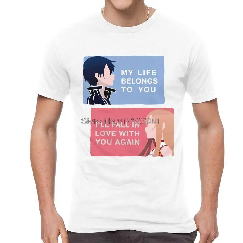 Футболка мужская хлопковая с коротким рукавом, уличная одежда с рисунком меча онлайн, Аниме Манга Асуна и Кирито КАЗАТО киригая