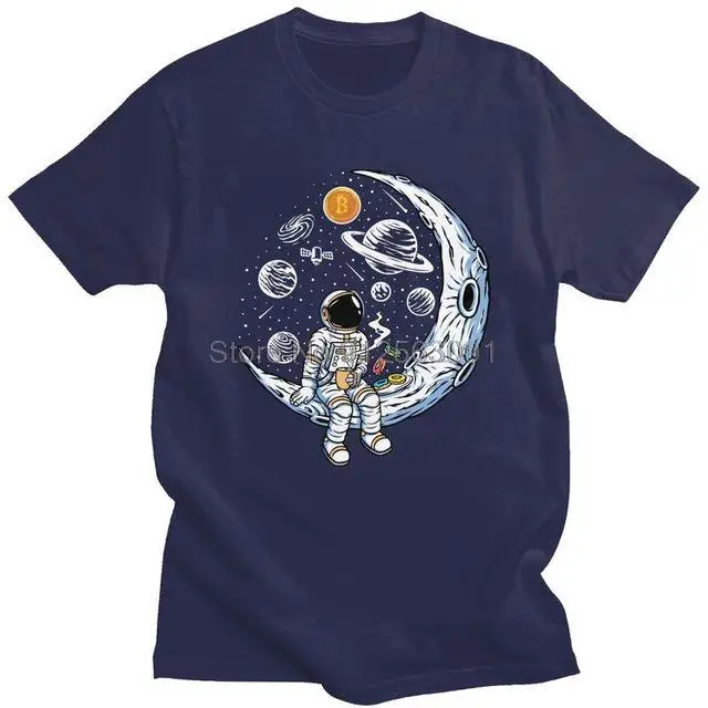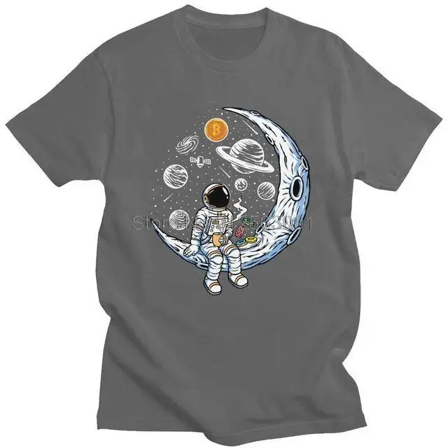 Футболка мужская с принтом биткоина криптовалюты, BTC к Луне, 100% хлопок, уличная одежда, футболка с коротким рукавом, футболки с принтом астронавта, криптовалюты, топы