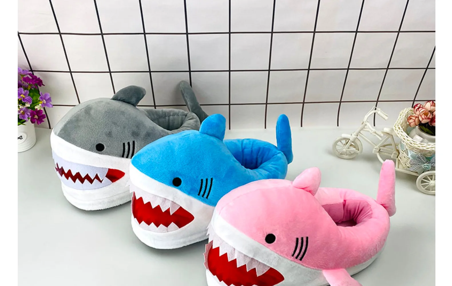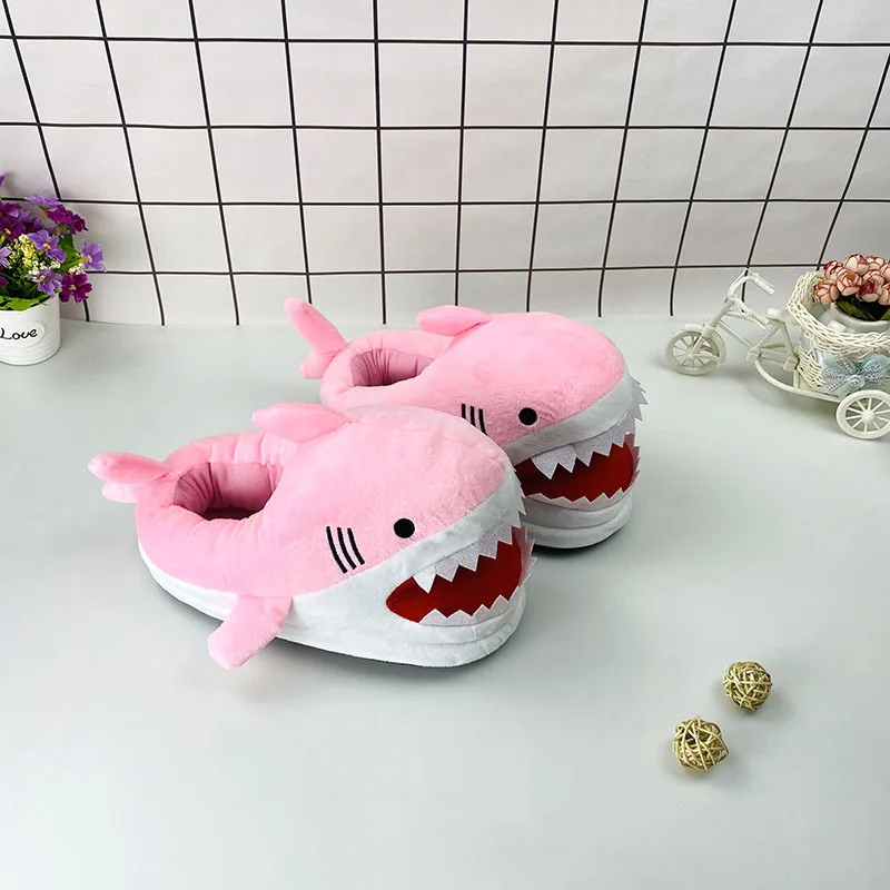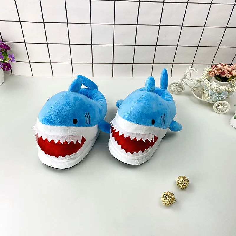 Зимние женские домашние меховые тапочки Закрытая обувь для дома и улицы Нескользящие сланцы мягкие Мультяшные акулы женские хлопковые тапочки