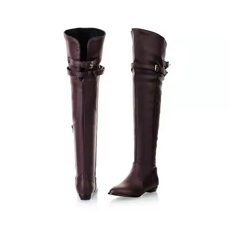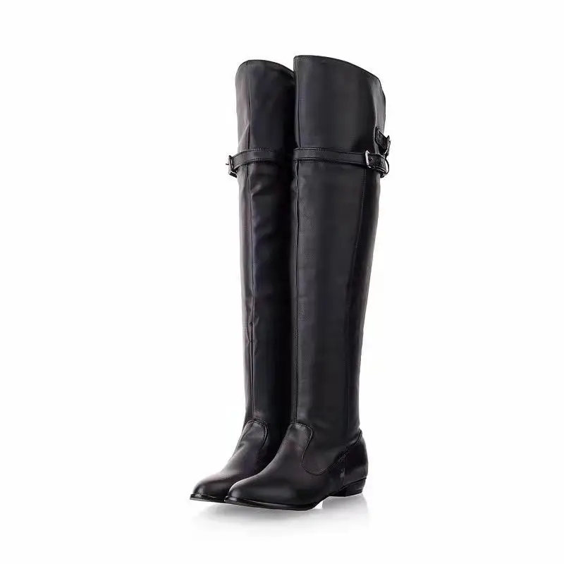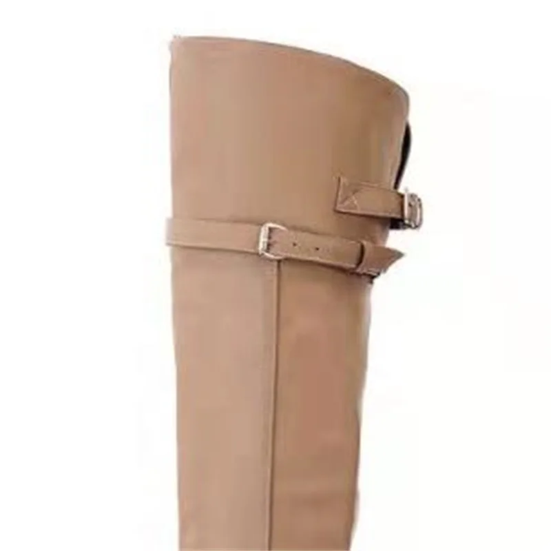 Женские сапоги с пряжкой и круглым носком, новинка 2021, облегающие сапоги выше колена на низком каблуке, кожаные сапоги, модные трендовые большие сапоги