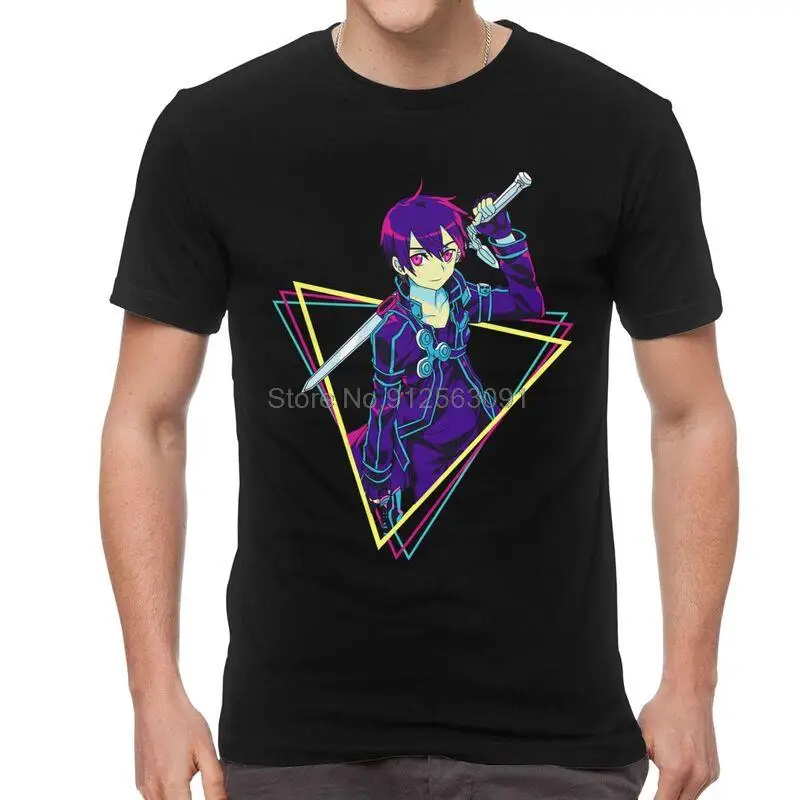 Футболки с изображением меча онлайн, мужские футболки, новинка, футболки с коротким рукавом, Аниме Манга, Сан-Кирито, ригая, искусственная кожа, хлопковая футболка, топ, одежда