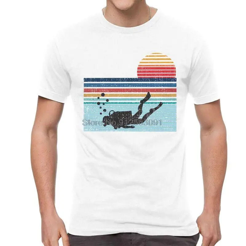 Винтажная ретро-футболка для дайвинга с аквалангом, подарки для дайвинга, Мужская футболка Харадзюку, хлопковая футболка с коротким рукавом для дайвинга, крутая футболка