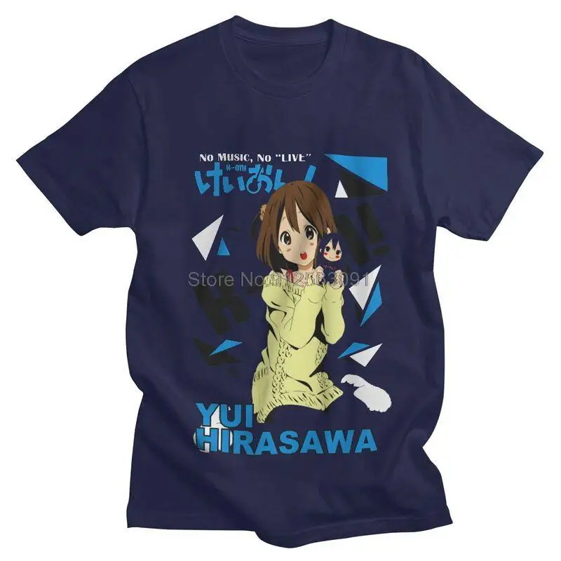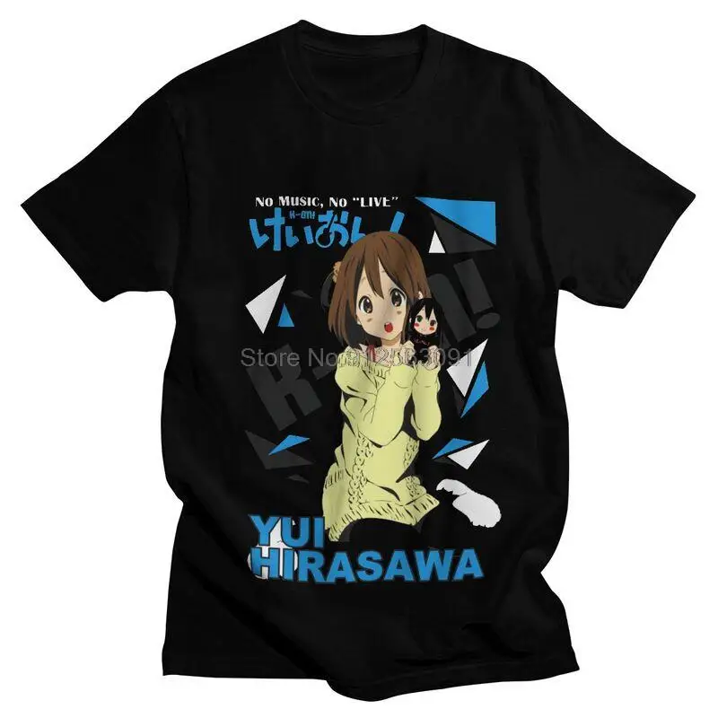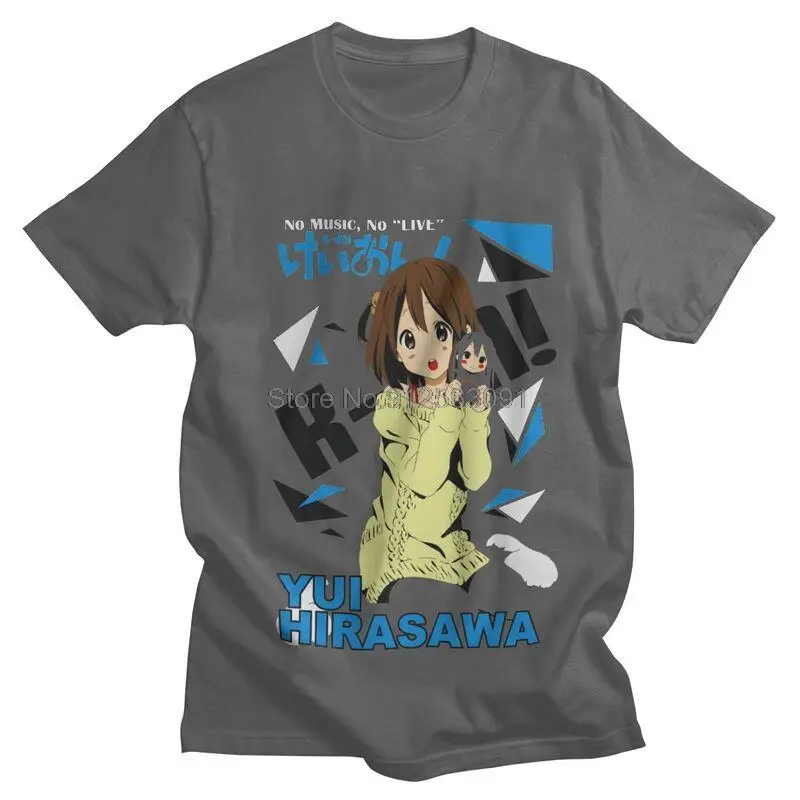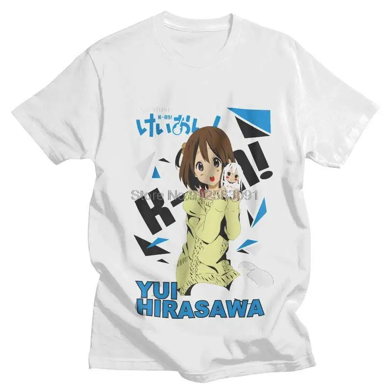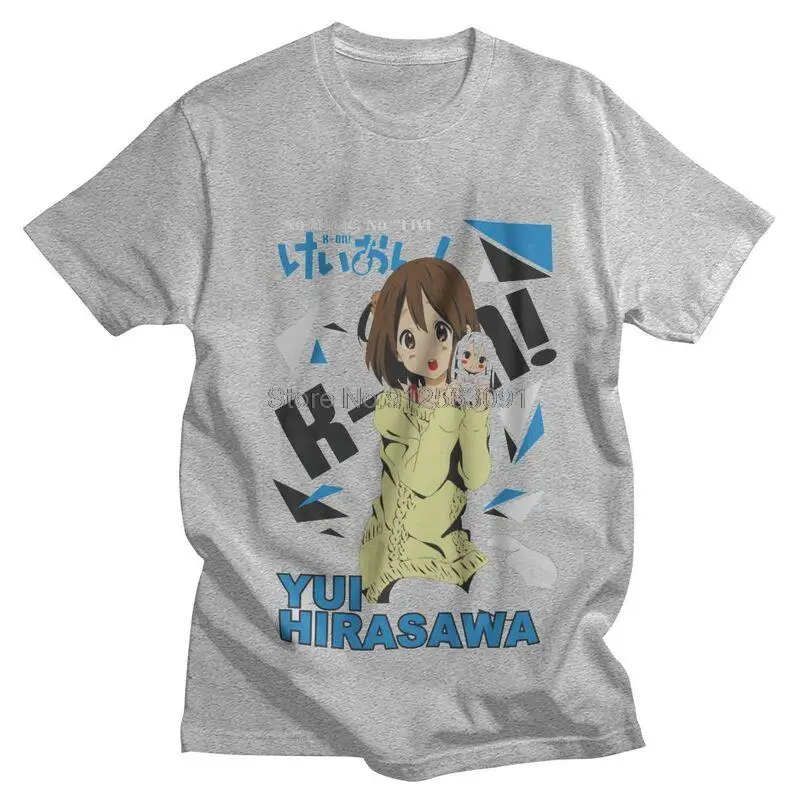 Футболка Yui Hirasawa K-ON для мужчин, футболка из 100% хлопка с принтом, футболка в стиле Харадзюку с коротким рукавом, футболка с японским Аниме Манга