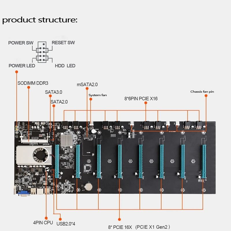 BTC-S37 Miner материнская плата для CPU Set 8 Слот для видеокарты DDR3 ПАМЯТЬ встроенный интерфейс VGA низкая мощность