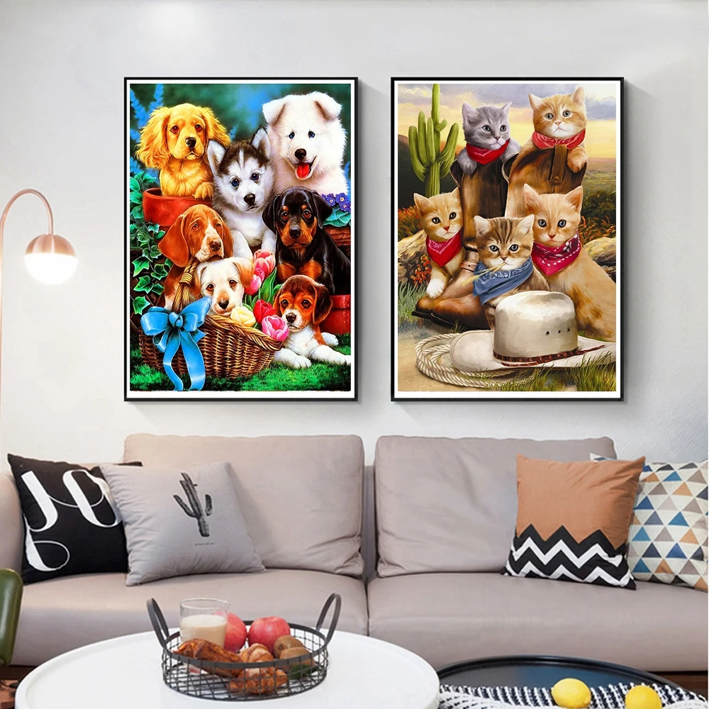 Полноразмерная алмазная живопись, милая собака, кошка, животное 5D, мозаика, крест, воздушный шар, пейзаж, художественный набор, домашний декор