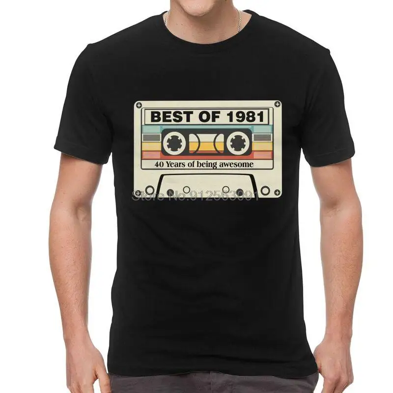 Потрясающая Мужская футболка в стиле ретро с кассетами 1981, Мужская футболка с короткими рукавами из 100% хлопка, подарок на 40-й день рождения, футболка, новинка, футболка, идея для подарка
