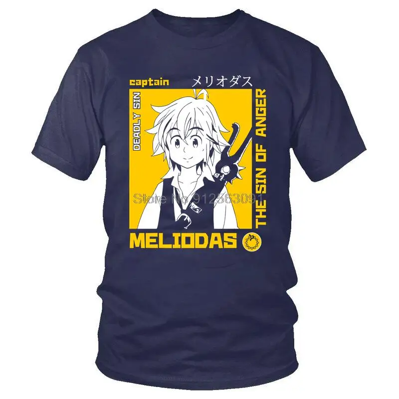 Футболка мужская с японскими манга семь смертных грехов, хлопковая рубашка с коротким рукавом, с рисунком аниме Nanatsu No Taizai Meliodas футболки, топы