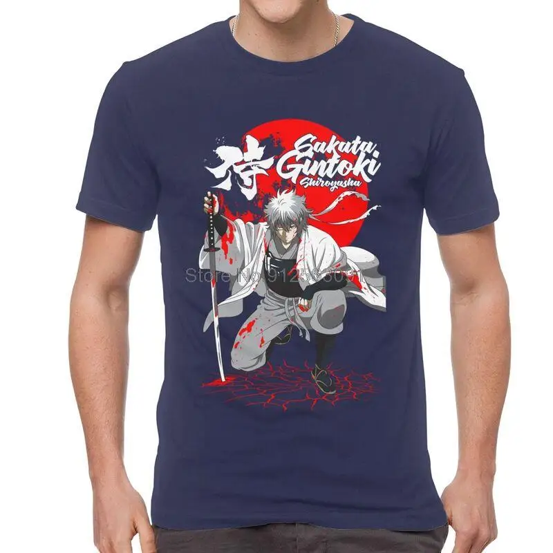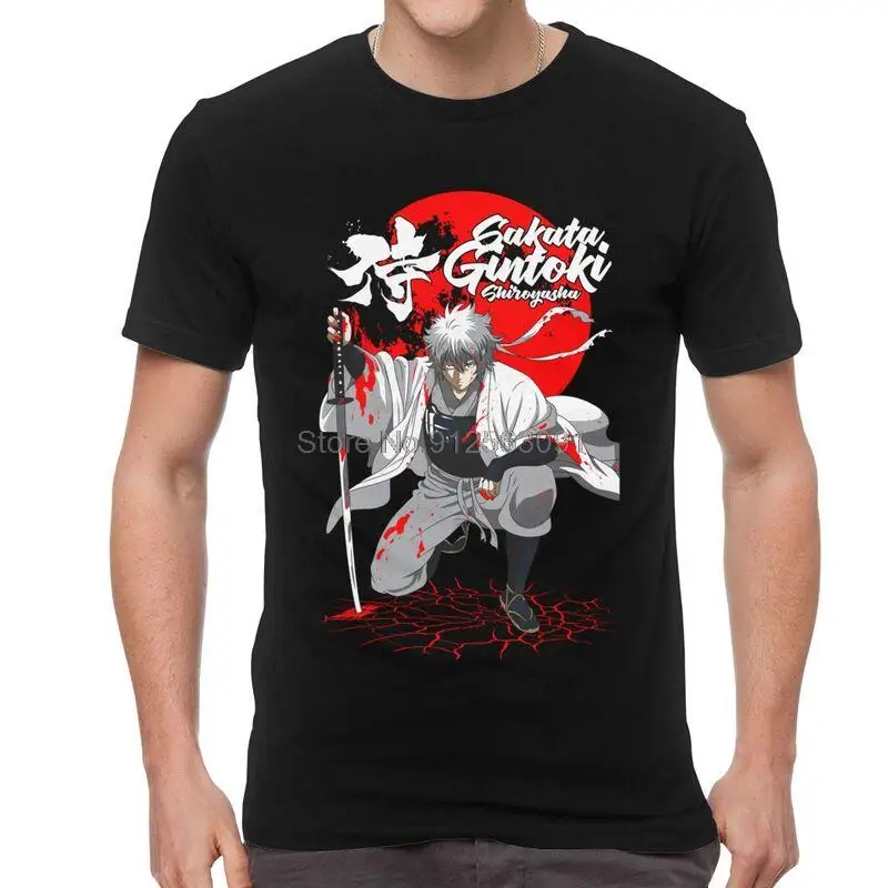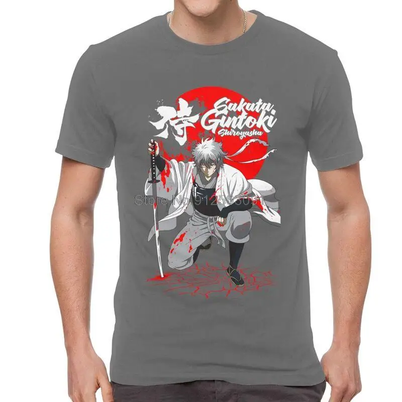 Футболки Samurai, гинтоки, Саката, мужские футболки с графическим рисунком, 100% хлопок, футболки с коротким рукавом, женская одежда в подарок