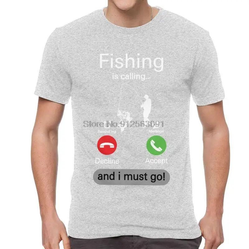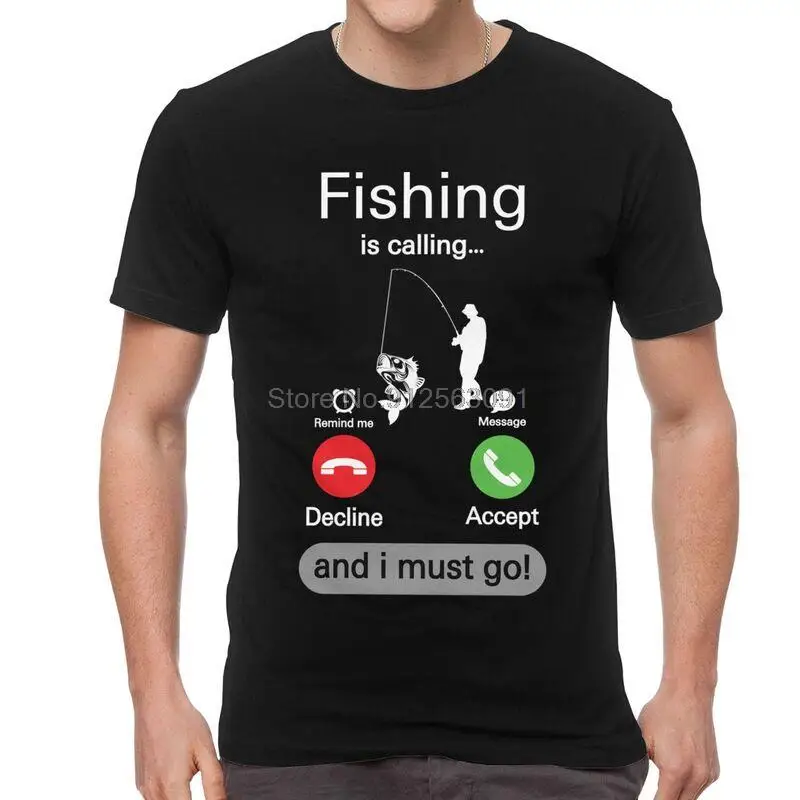 Мужская хлопковая футболка с принтом Рыбалка звонит и я должен пойти, модная футболка с коротким рукавом, футболки для рыбалки