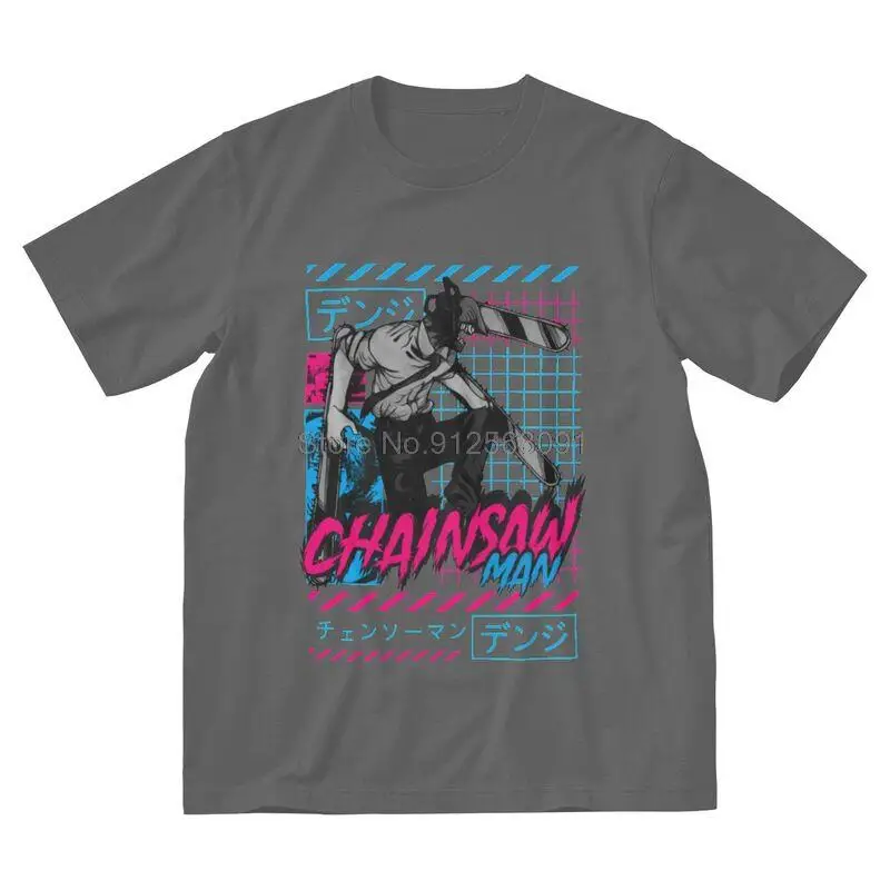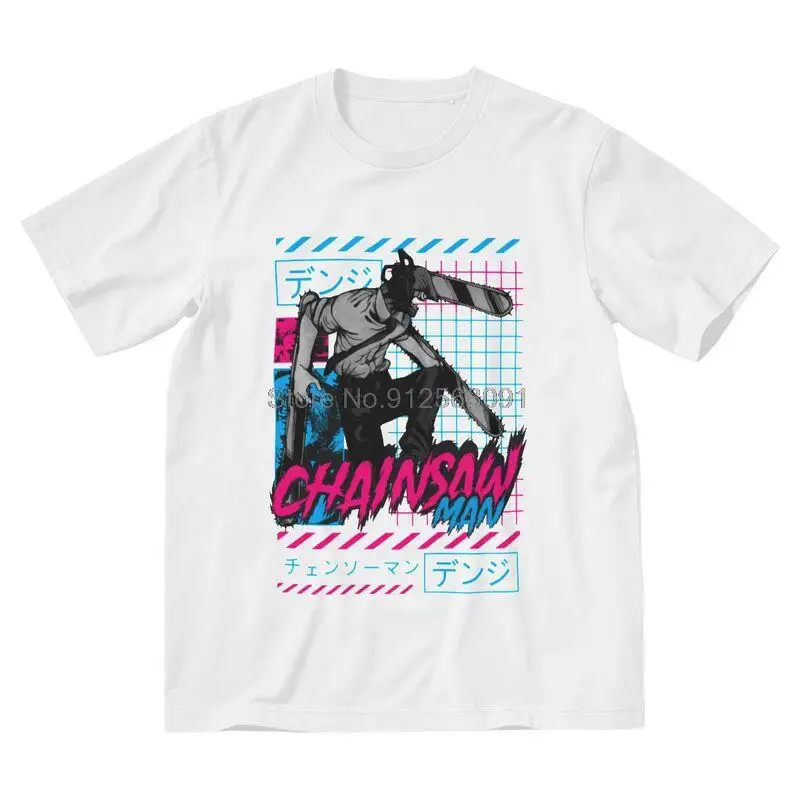 Футболка мужская с рисунком японского аниме манга, бензопилы, графи...