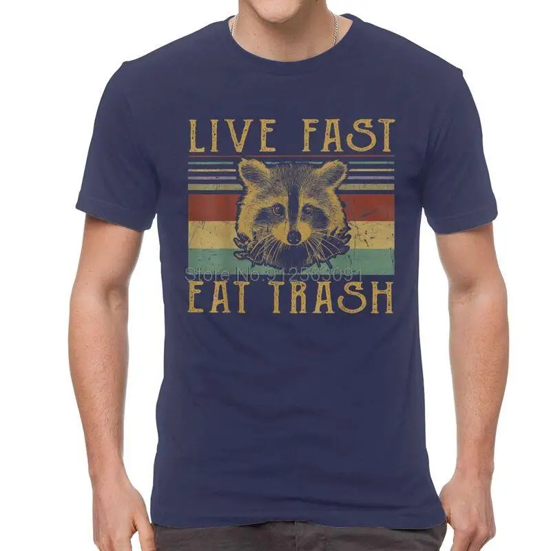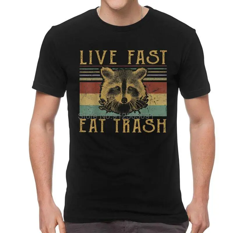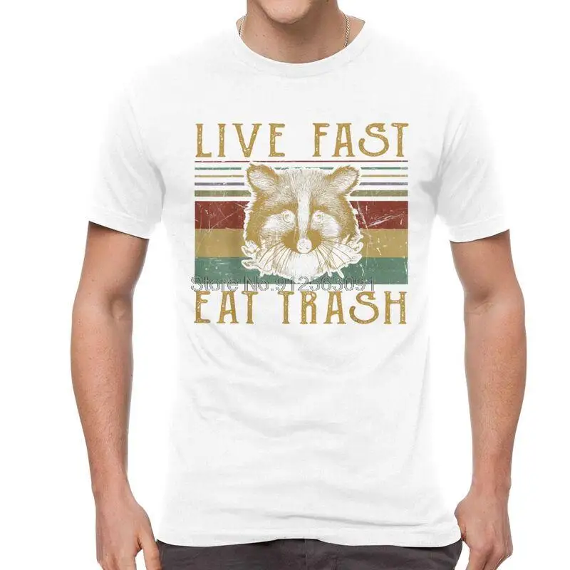Футболка мужская с забавным принтом, 100% хлопок, короткий рукав, винтажная тенниска с принтом енота, быстрая жизнь