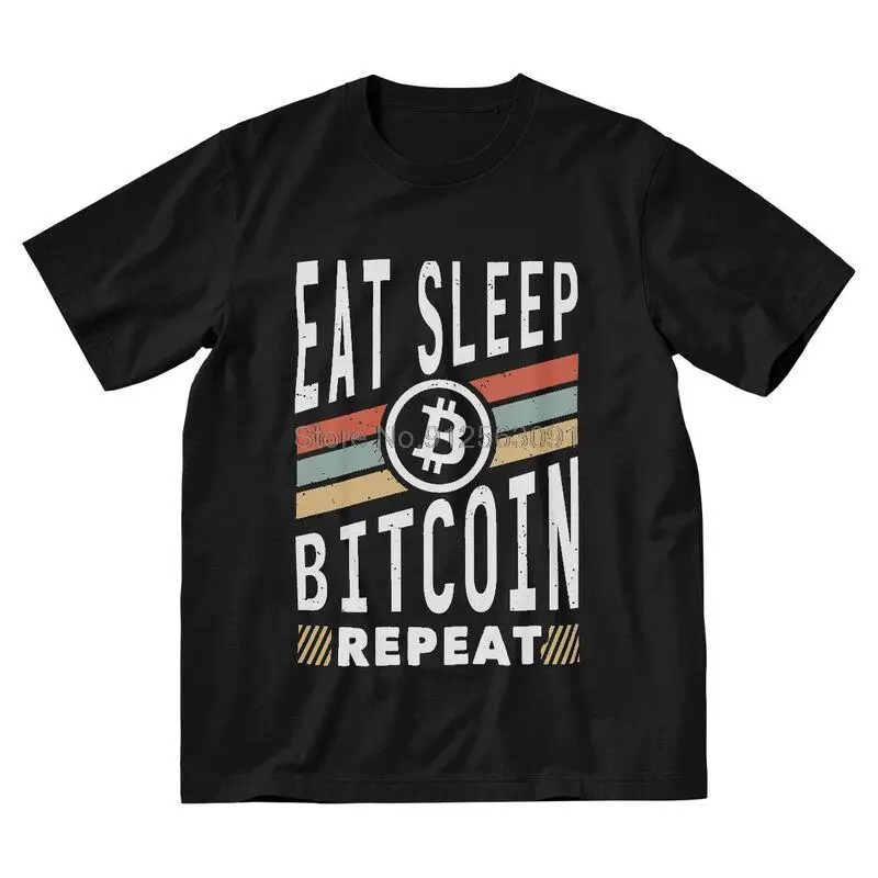 Винтажная забавная футболка с биткоином Eat Sleep, Мужская новинка, футболка с коротким рукавом, хлопковая криптовалютическая футболка, крутая футболка, топы, подарок