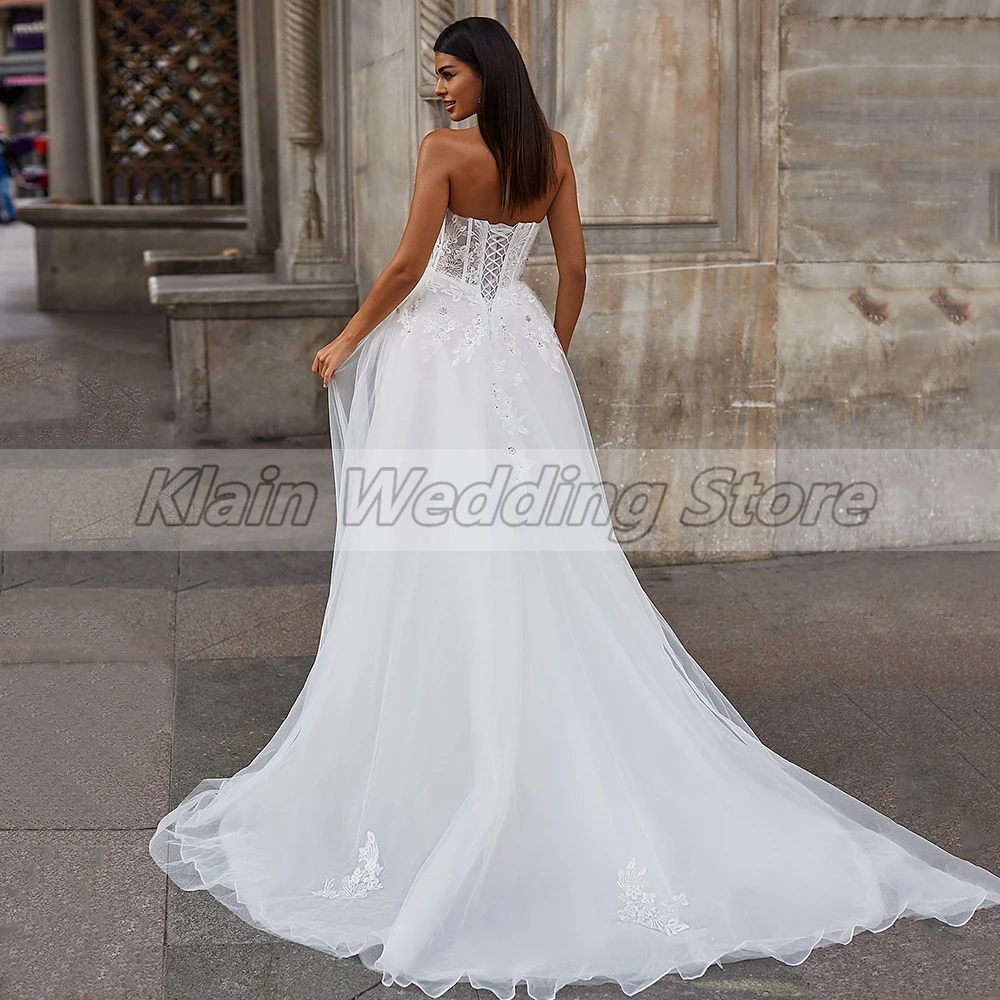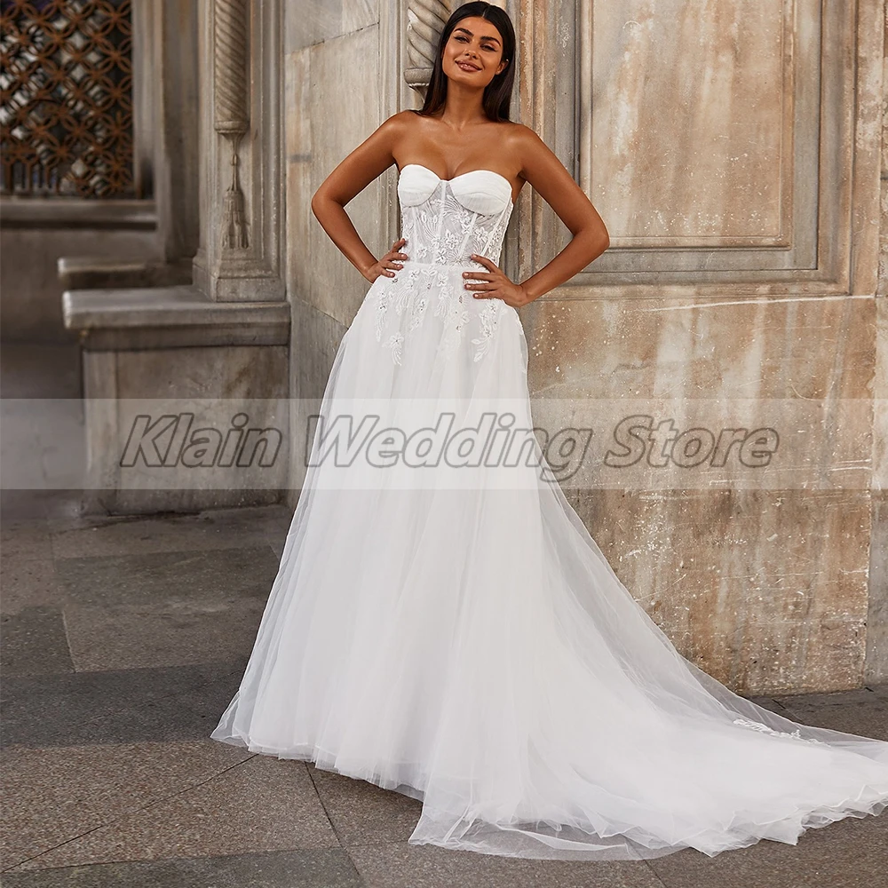 Женское свадебное платье, трапециевидный корсет с кружевной аппликацией, кружевное свадебное платье со шлейфом в богемном стиле