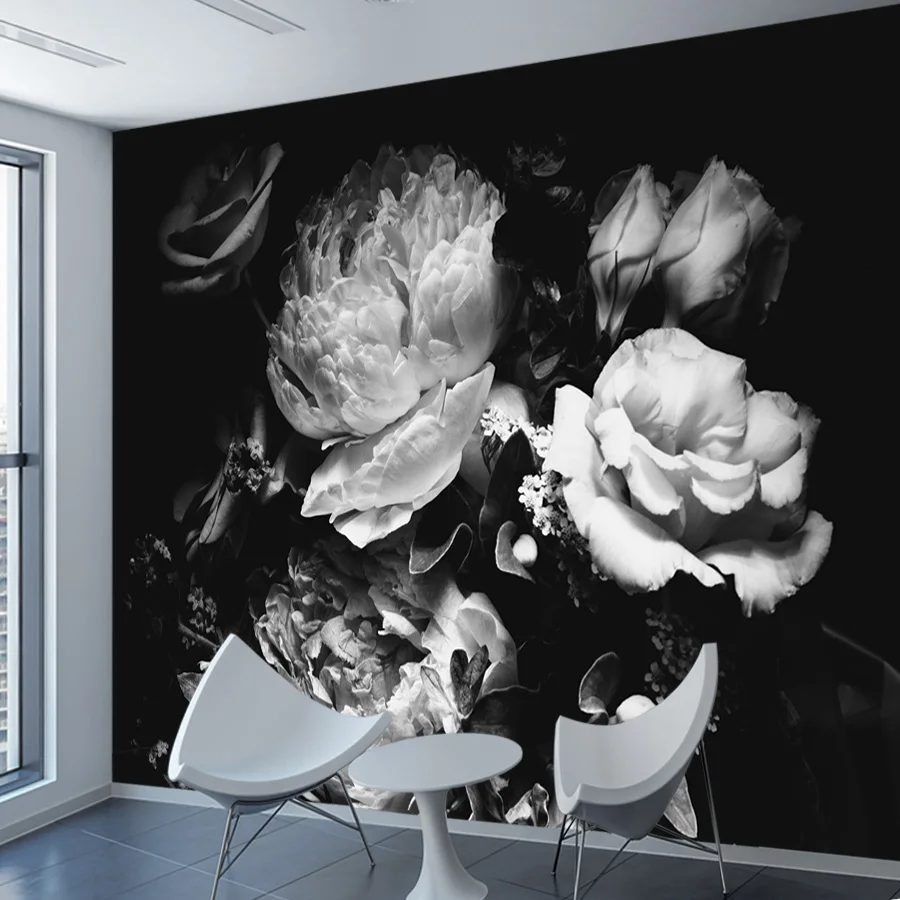 Съемная Настенная роспись, черные, белые розы, крутые контактные обои для гостиной, интерьерные напольные настенные бумаги, домашний декор