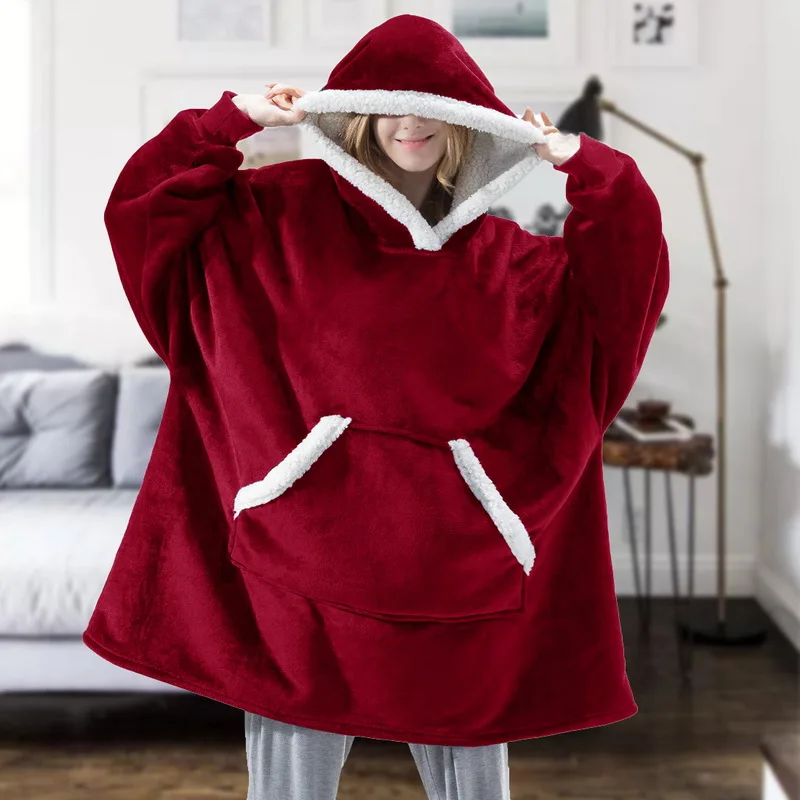 Женские толстовки, оверсайз, Флисовое одеяло, толстовка с капюшоном, женские топы, ТВ-одеяло с длинным рукавом, зимняя теплая толстовка
