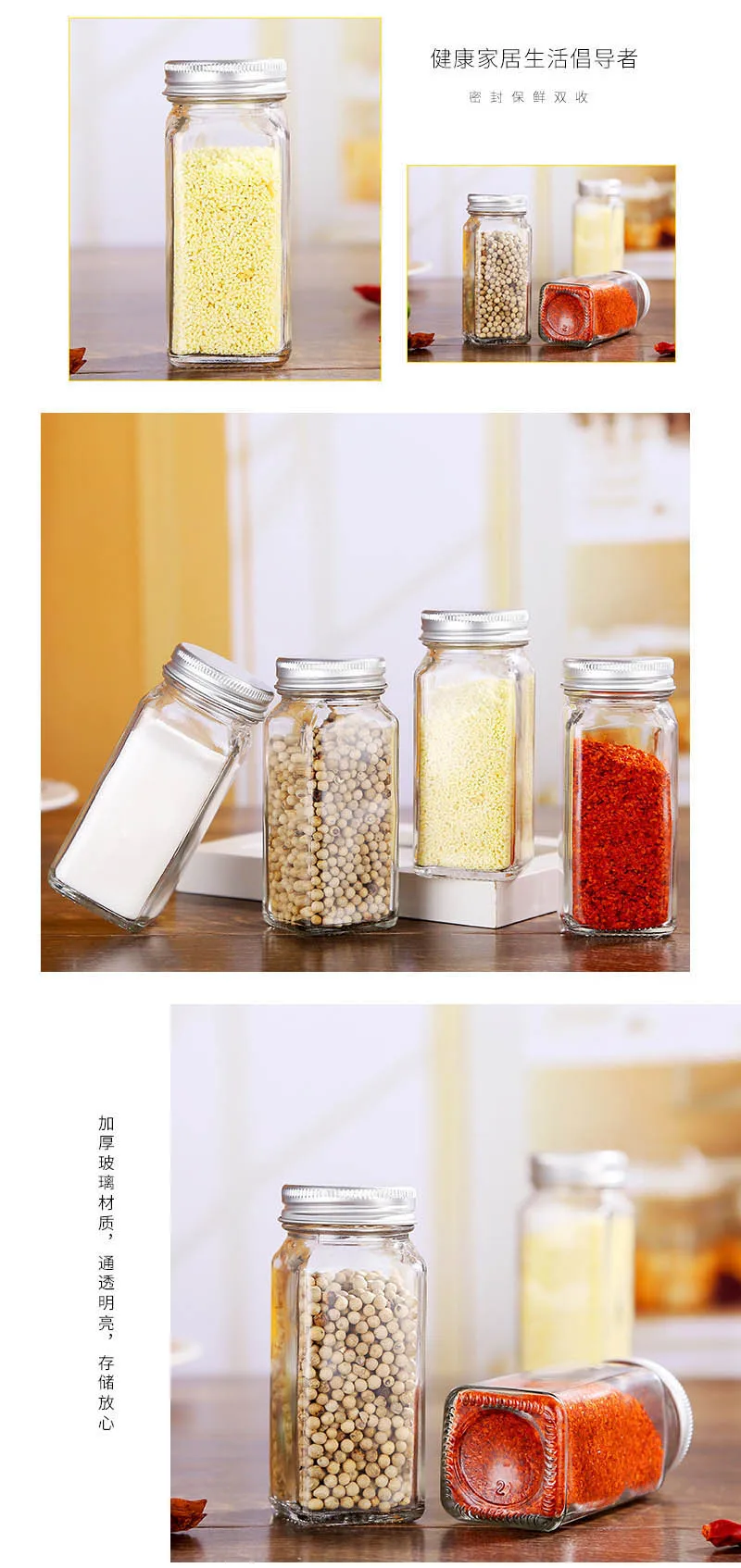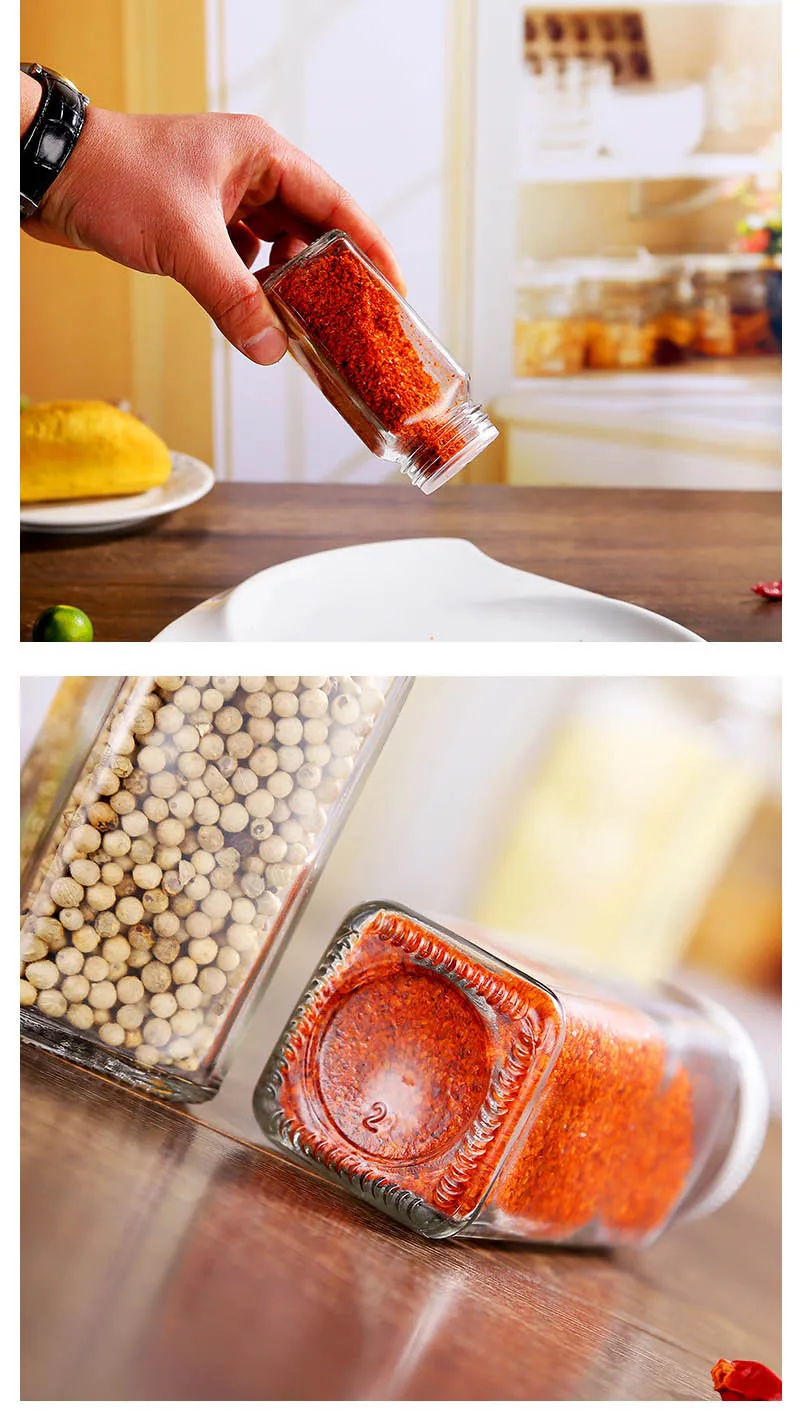 Набор стеклянных банок для специй, контейнер для соли для перца, контейнеры для приправ, квадратный стеклянный контейнер, бутылка для приправ, бутылка для барбекю