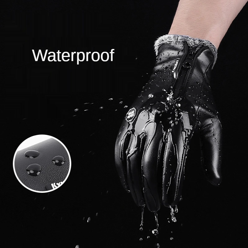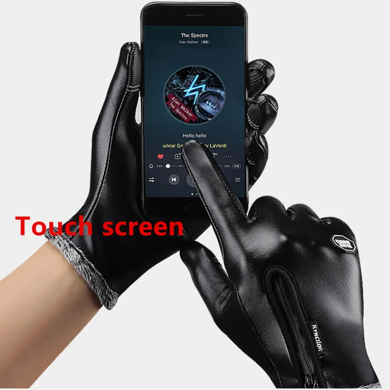 Зимние велосипедные перчатки для улицы мужские теплые флисовые кожаные перчатки ветрозащитные водонепроницаемые Нескользящие лыжные перчатки для сенсорных экранов