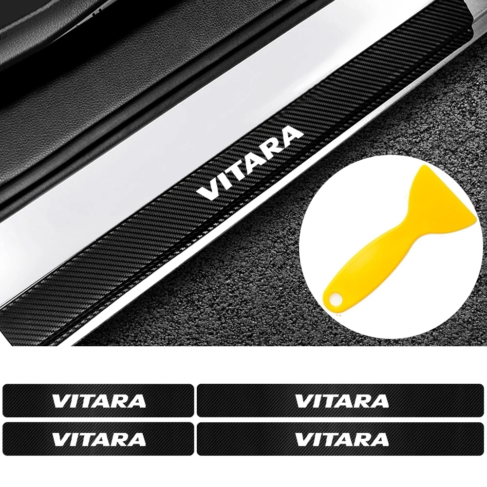 4 шт. для Suzuki Vitara эмблема значок Автомобильная дверь порог педаль наклейки Защита порога автомобильной двери углеродное волокно виниловые декоративные наклейки