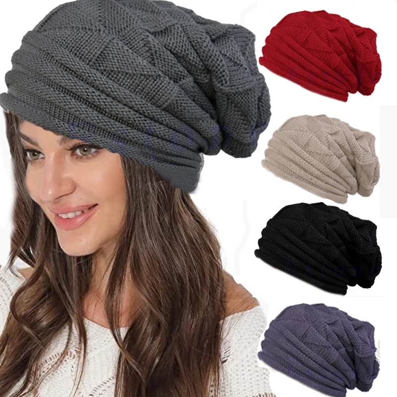Вязаная мешковатая шапка унисекс для женщин и мужчин, зимние теплые шапки большого размера, лыжная шапка с напуском, шапочки, Зимняя Шапка-бини