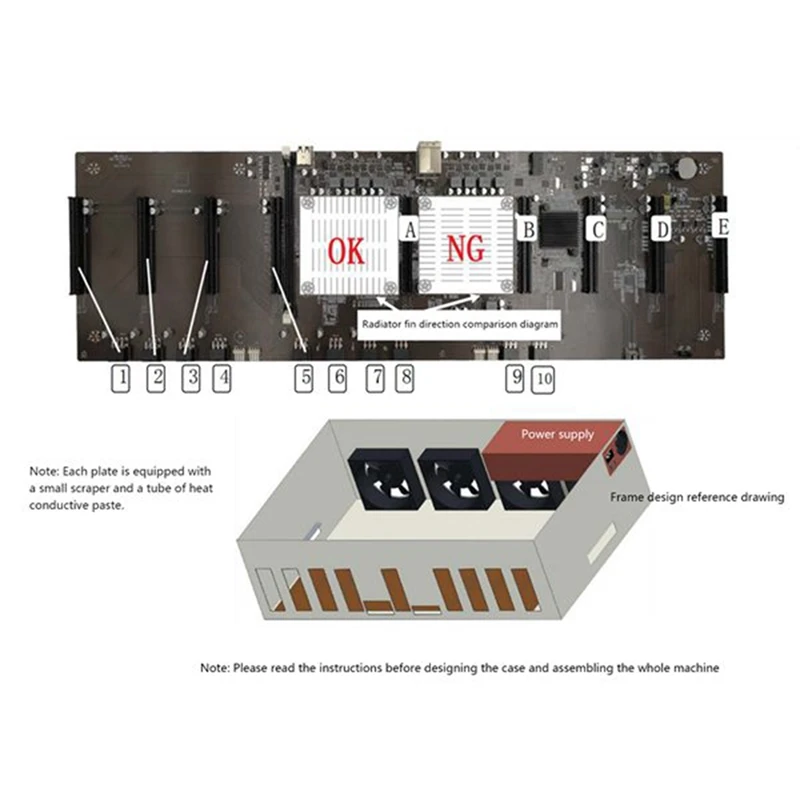 Материнская плата X79 BTC для майнинга 9, графический слот, шаг 60 мм, поддержка RTX 3060, графический процессор