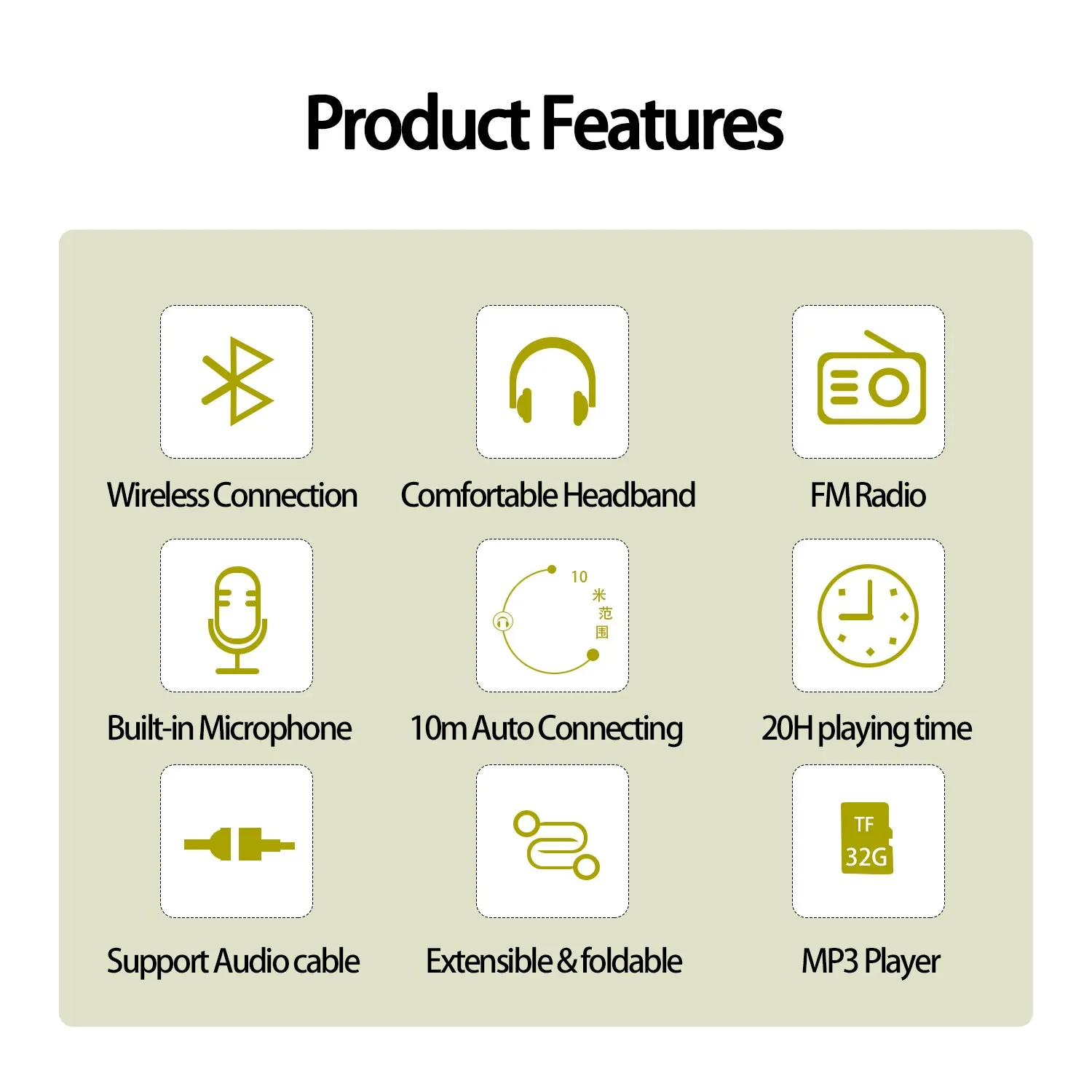 Bluetooth V5.0 + Функция MP3 + fm-радио поддержка воспроизведения стерео музыки, телефонных звонков...