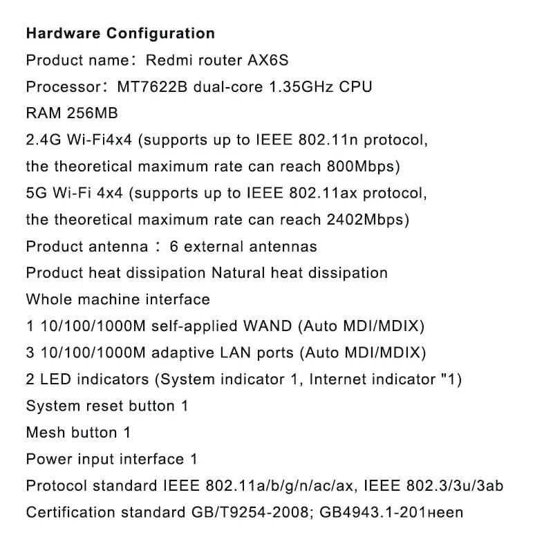 Wi-Fi-роутер Xiaomi Redmi AX6 S, сетка высокой скорости, 256 м, 2,4 ГГц, 5,0 ГГц, двухдиапазонный, с 6 антеннами с высоким коэффициентом усиления