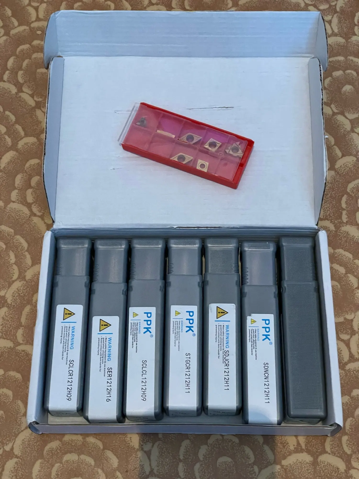 Нормальные резцы. У наружного резьбового немного не совпадает резьба с центром вставки, но закрутил. Полный комплект, вставки в комплекте по мягким металлам, но на небольших скоростях работают и по стали. Заказываю не первый раз, и в общем это хорошие резцы. Из стандартных это полная замена резцам с напайками. Пришли быстро, заказывал из РФ. Покупал по 1289р.