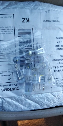 Заказ доставлен на неделю раньше чем обещали. Поставил две лампы на освещение номерного знака. Светят ярче, чем родные. Может это из-за того, что цвет не жёлтый, а белый.