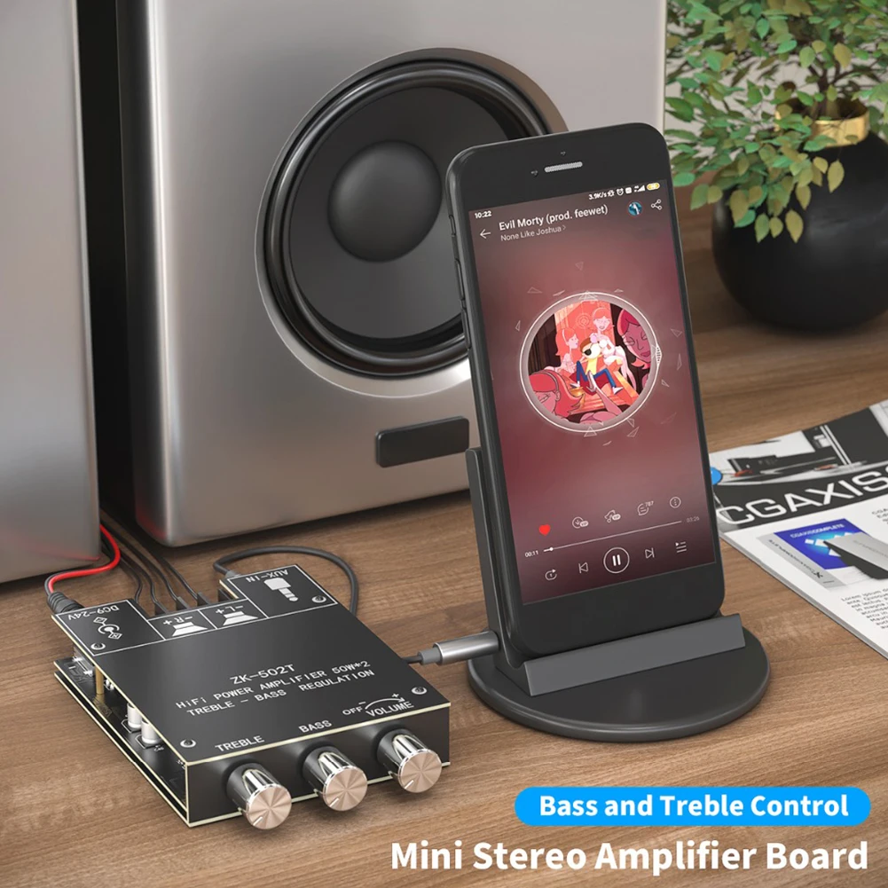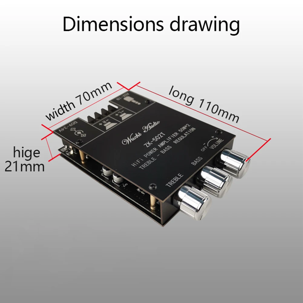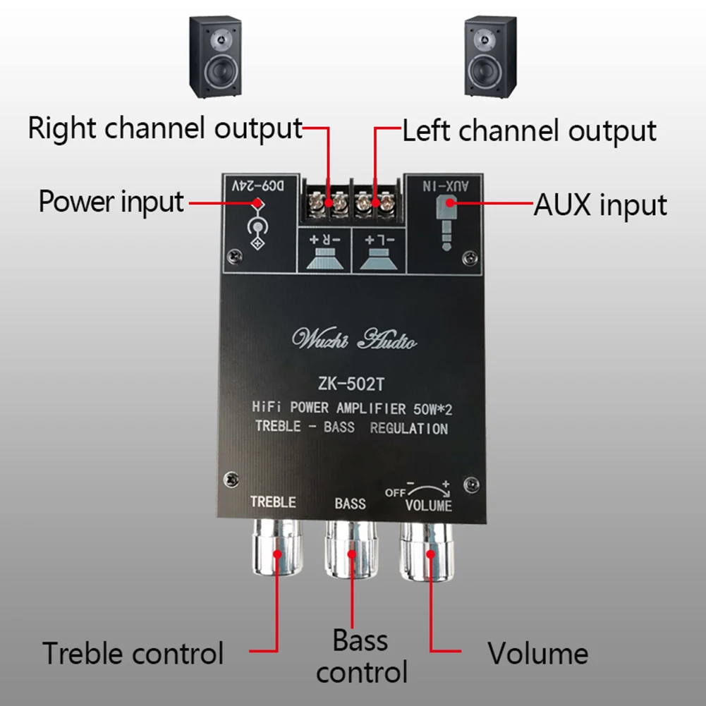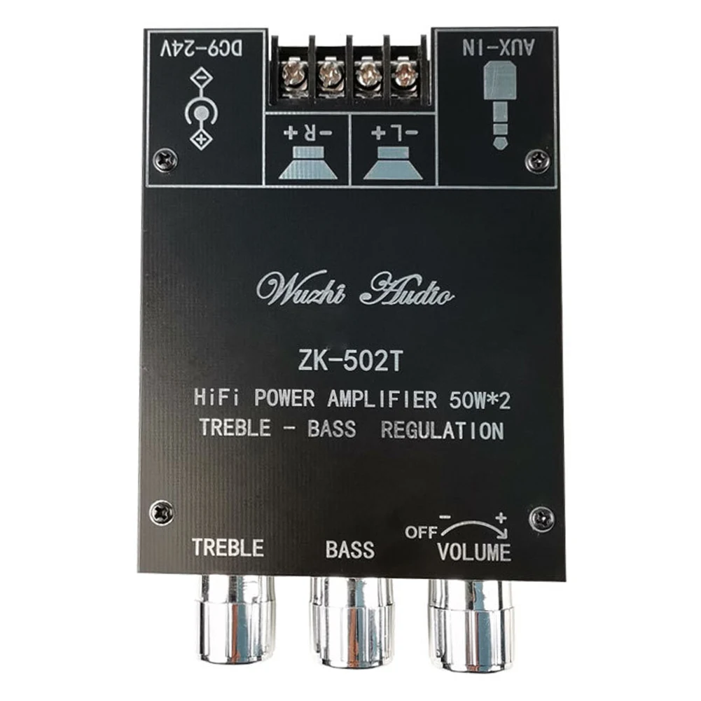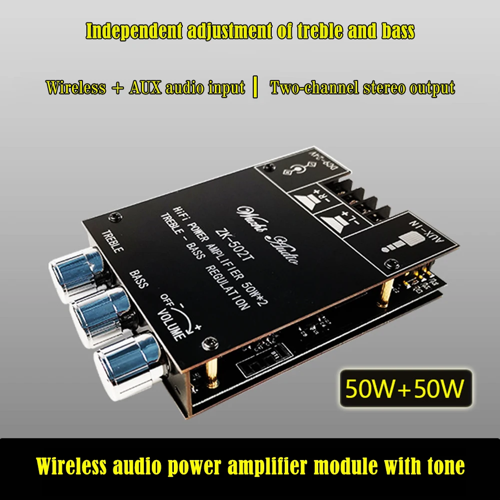 ZK-502T 50Wx2 Плата усилителя аудиоресивера, совместимая с Bluetooth 5,0, модуль стереоусилителя, плата динамика, аксессуар для сабвуфера