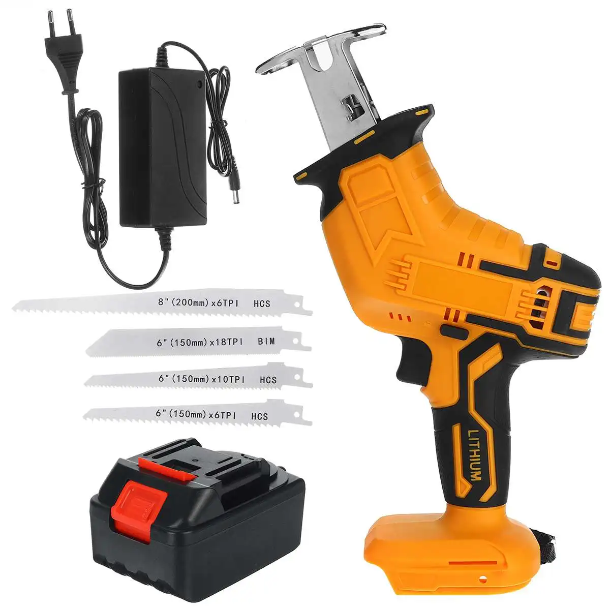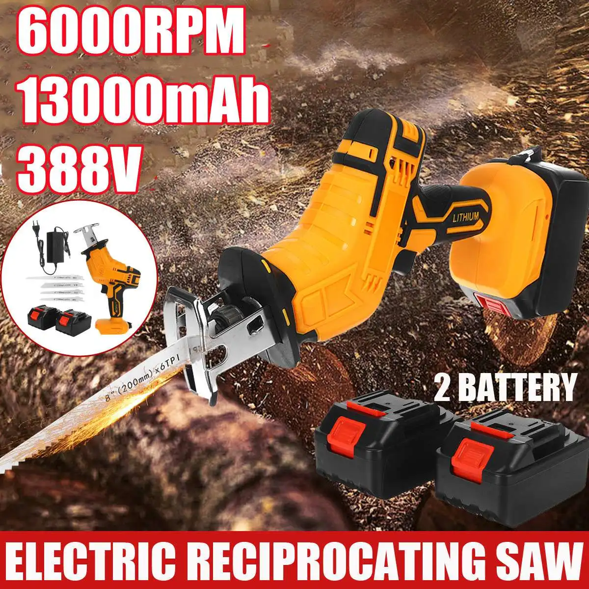 Беспроводная сабельная пила 388 в + 4 лезвия пилы, инструмент для резки металла и дерева, портативные деревообрабатывающие резаки с зарядкой от 12 батарей