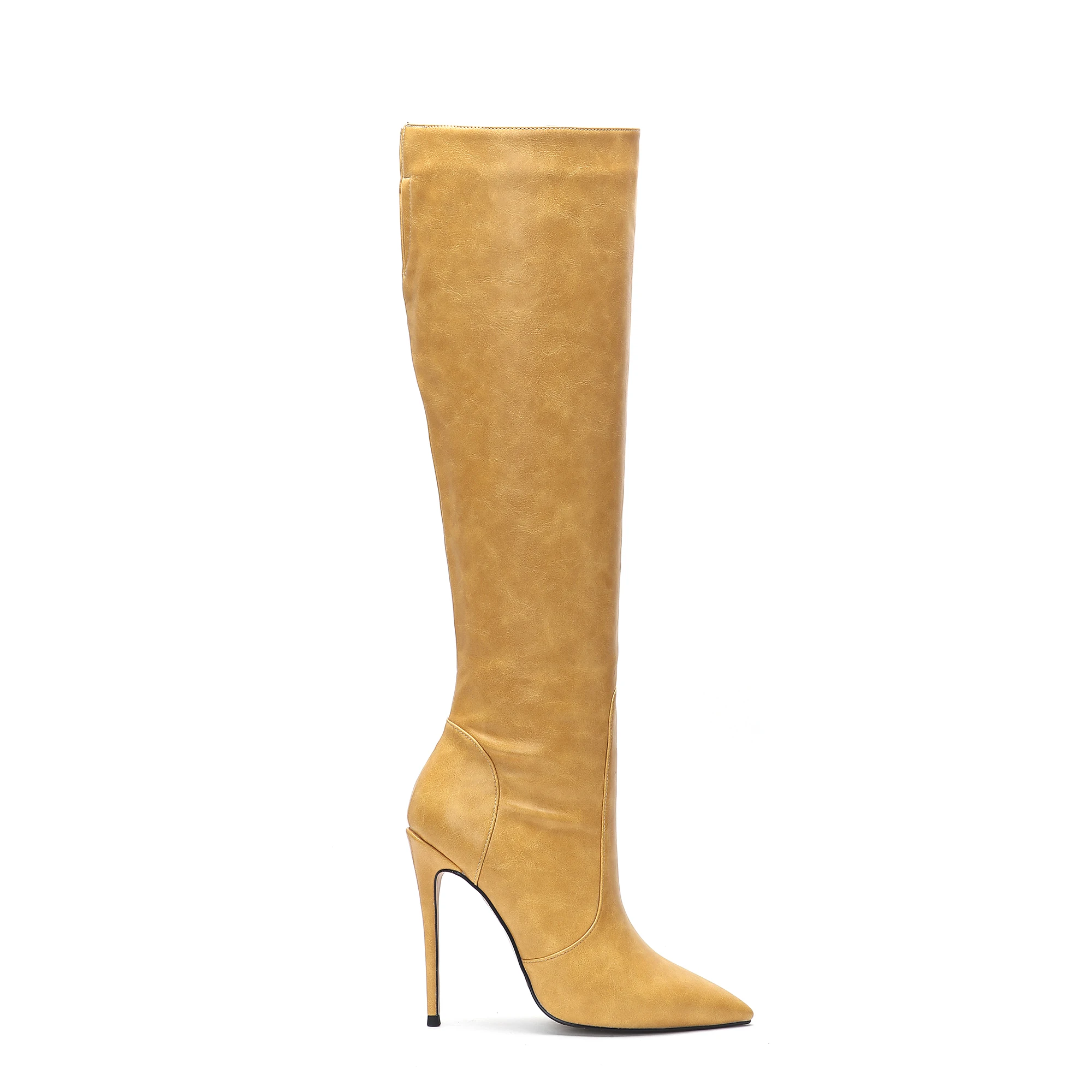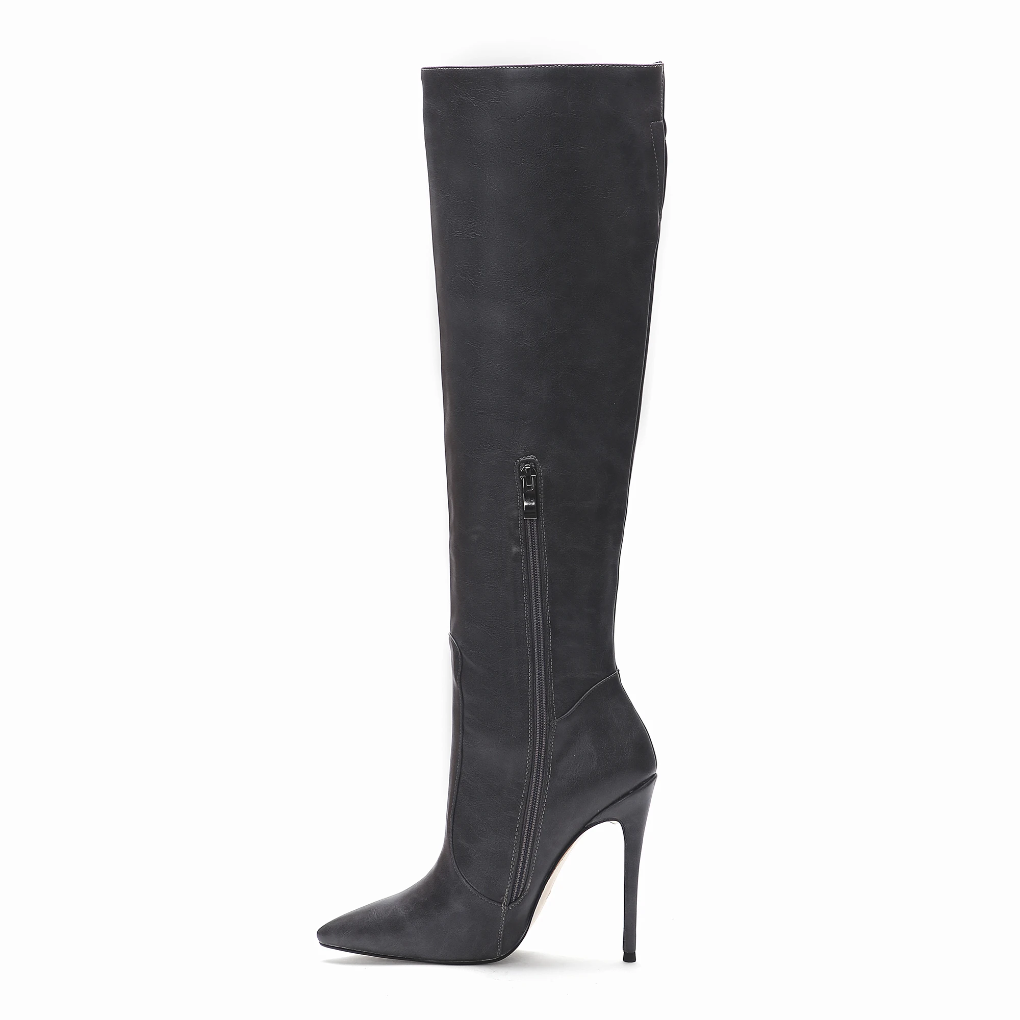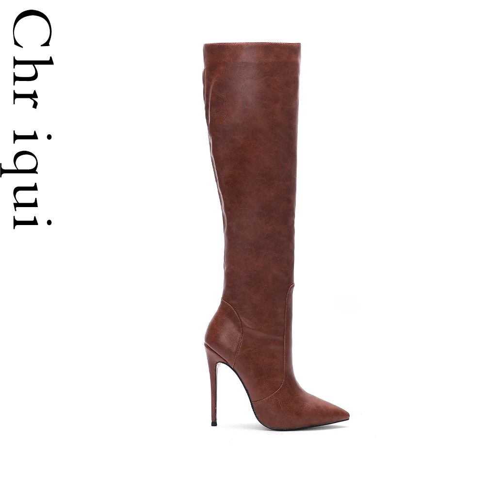 Женские однотонные повседневные сапоги до колена Chriqui, женские сапоги на молнии и высоком каблуке из свиной кожи, коричневые, черные, зеленые, зимние сапоги на высоком каблуке