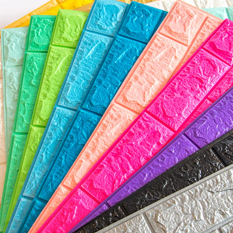 C. Многоцветные варианты: Эти 3D наклейки для обоев из пенопласта поставляются с различными цветами, которые можно смешивать и сочетать с эстетическим внешним видом и дизайном. 3D кирпичные обои, которые имеют розовый, синий, серый, зеленый, черный, коричневый и другие цвета для вас, чтобы выбрать свой любимый цвет.