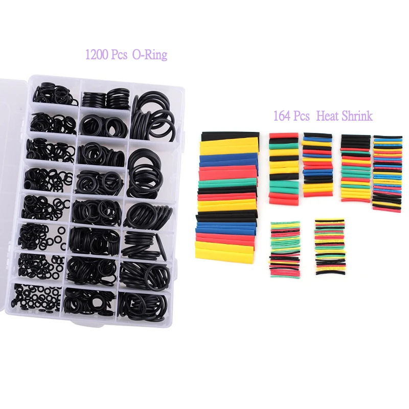 1200 шт уплотнение NBR уплотнительное кольцо шайба нитрил-резиновое изделие комплект уплотнительных колец, 164 шт термоусадочная трубка изоляция кабеля обмотка полиолефина