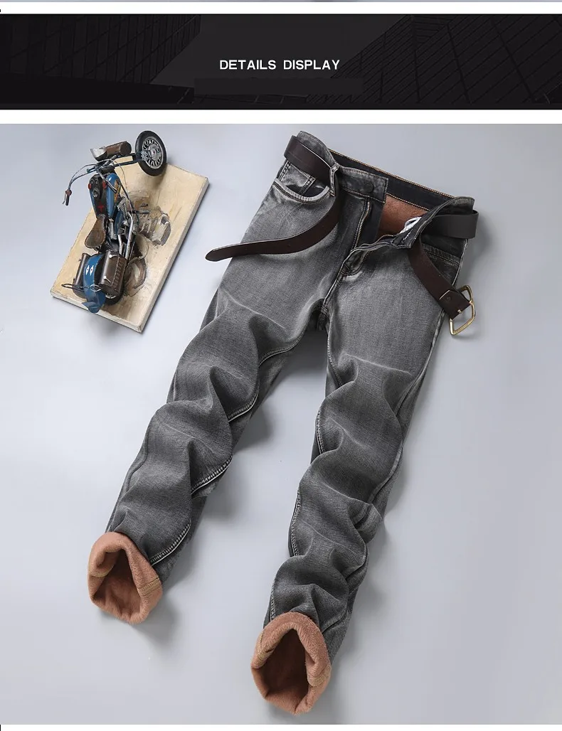 Мужские зимние теплые флисовые джинсы модные повседневные классичес...