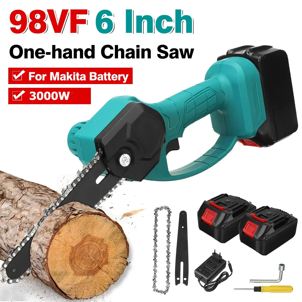 Электрическая цепная пила, 6 дюймов, 98 в, 3000 Вт, 2 аккумулятора